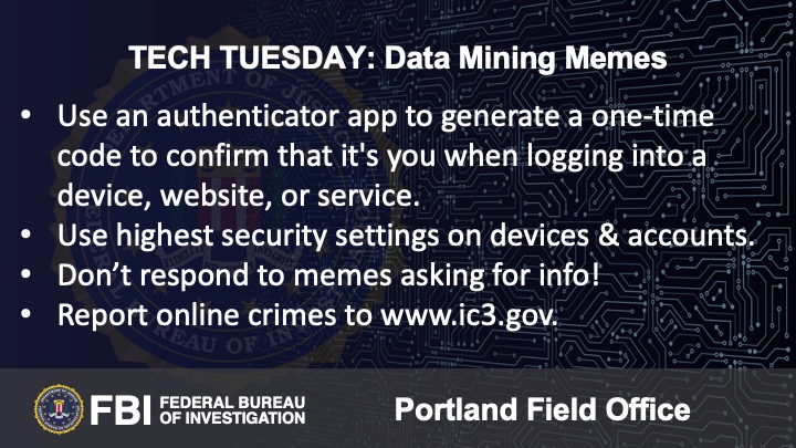Oregon FBI Tech Tuesday: Building A Digital Defense Against Data Mining Memes (Photo) - 10/26/21