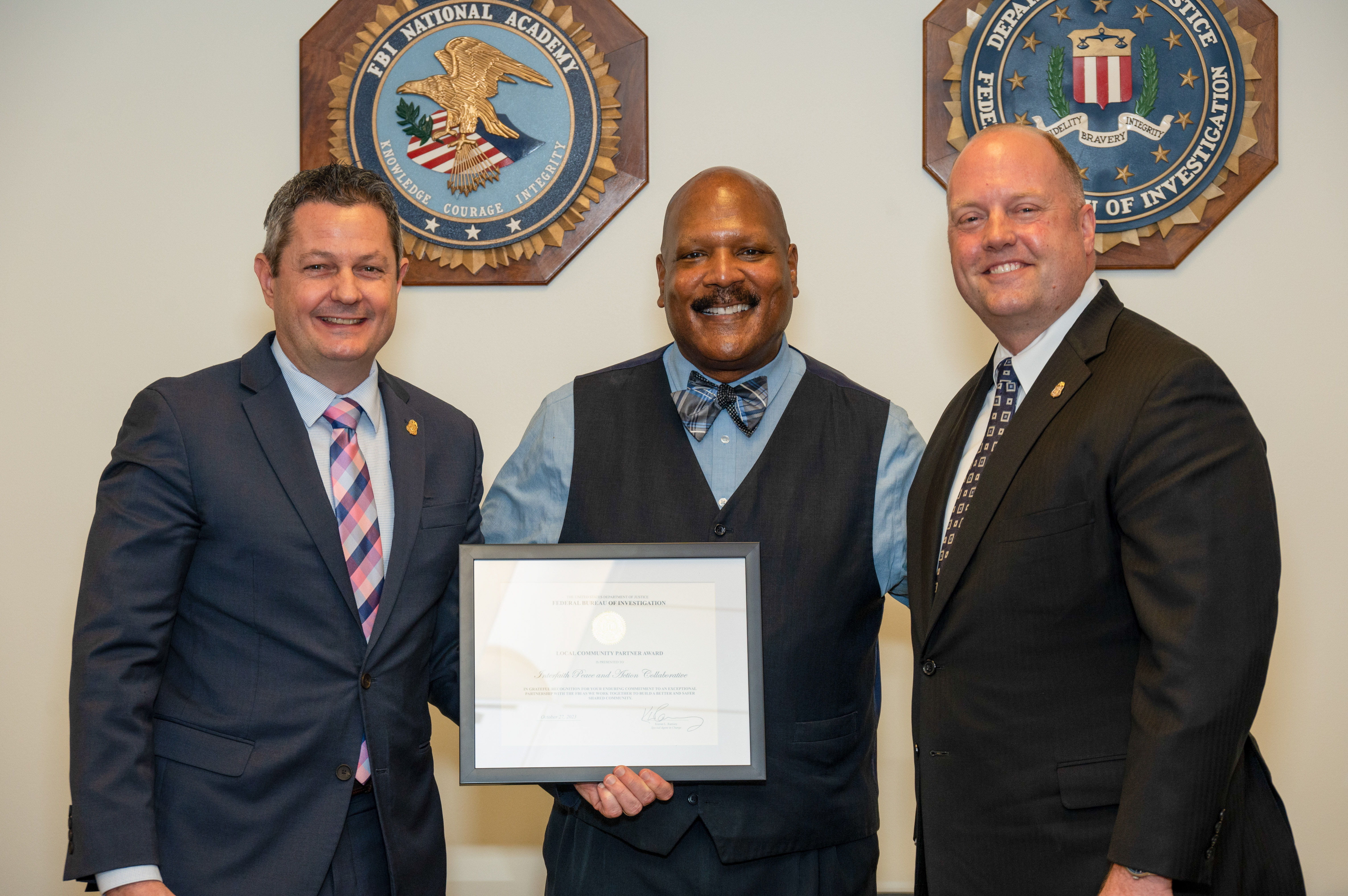 Photo: ASAC Matthew Schlegel with Pastor Matthew Hennessee, IPAC and SAC Kieran Ramsey