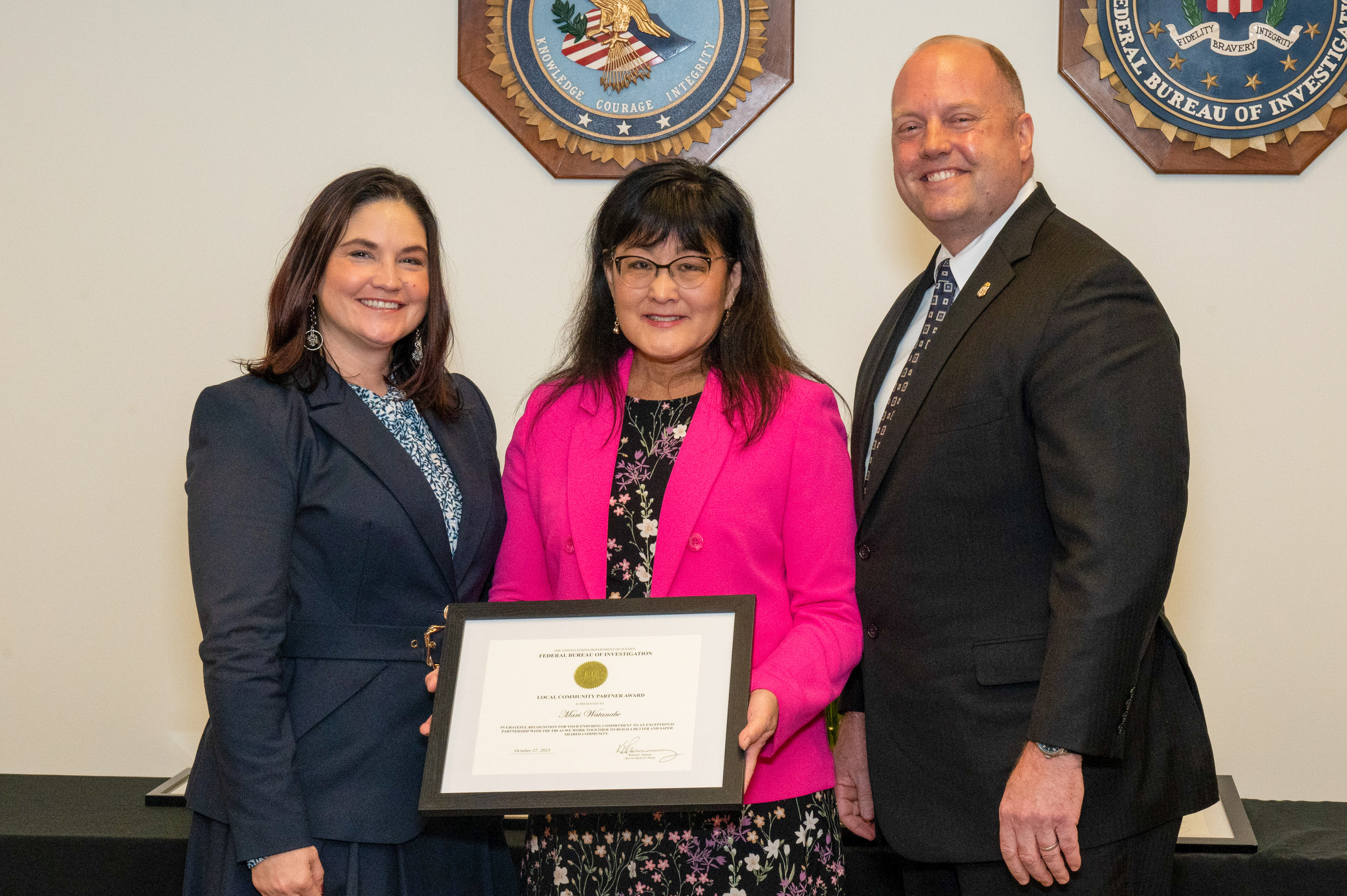 Photo: ASAC Stephanie Shark with Mari Watanabe and SAC Kieran Ramsey