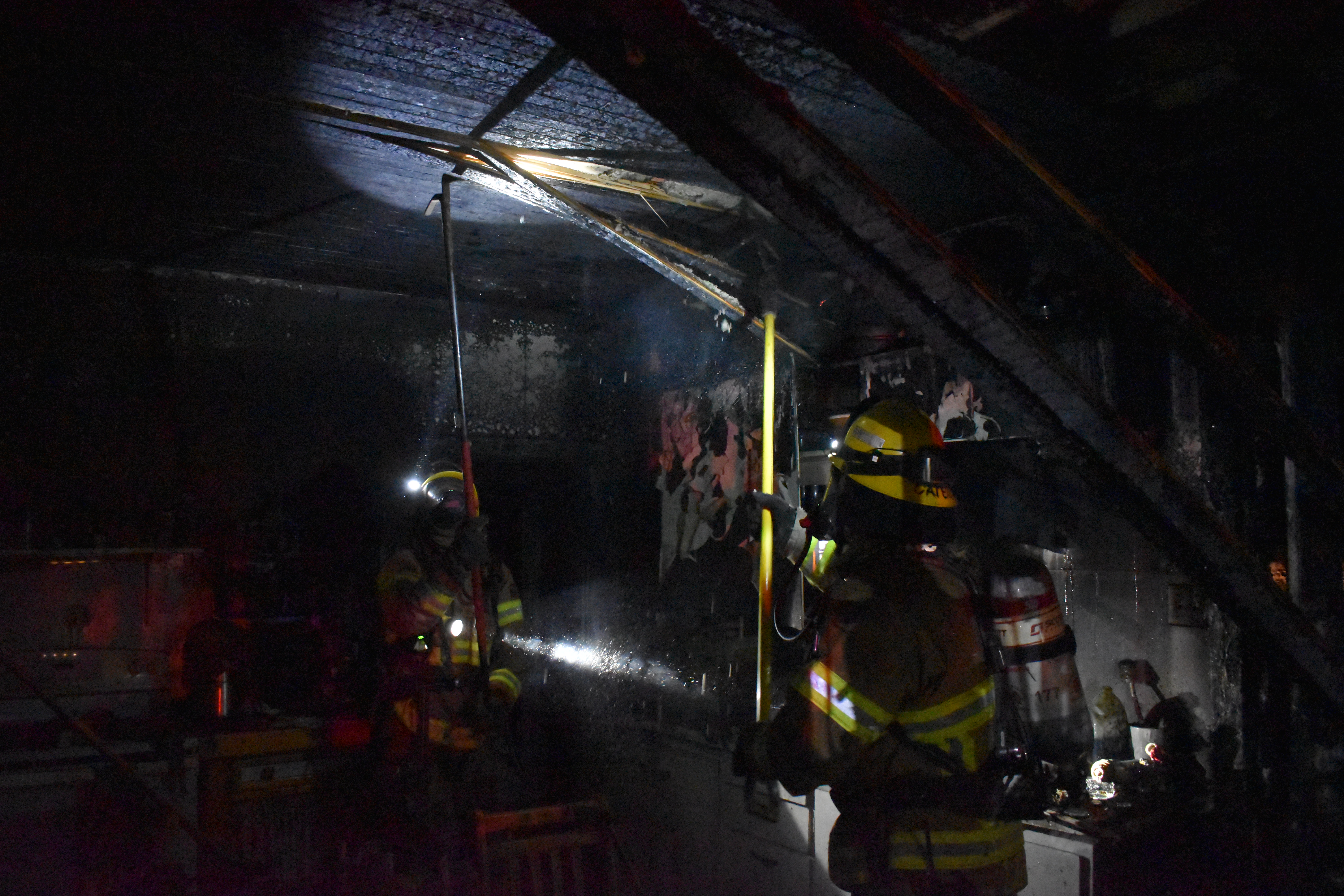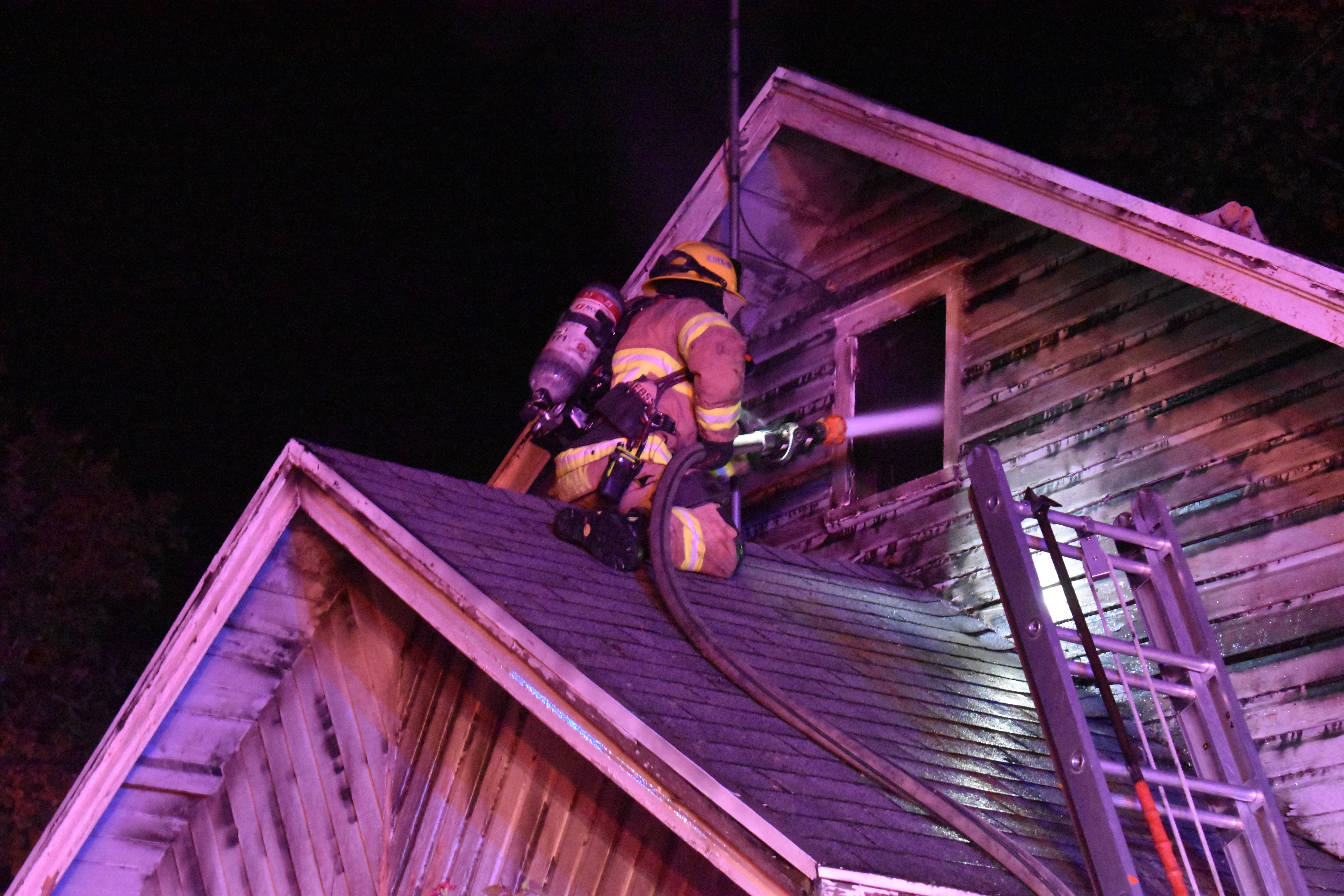 The fire was discovered by the resident after their dog woke them up to the noise of the fire. They were able to safety exit the house with the dog. No injuries were reported on scene. The cause of the fire is currently under investigation.