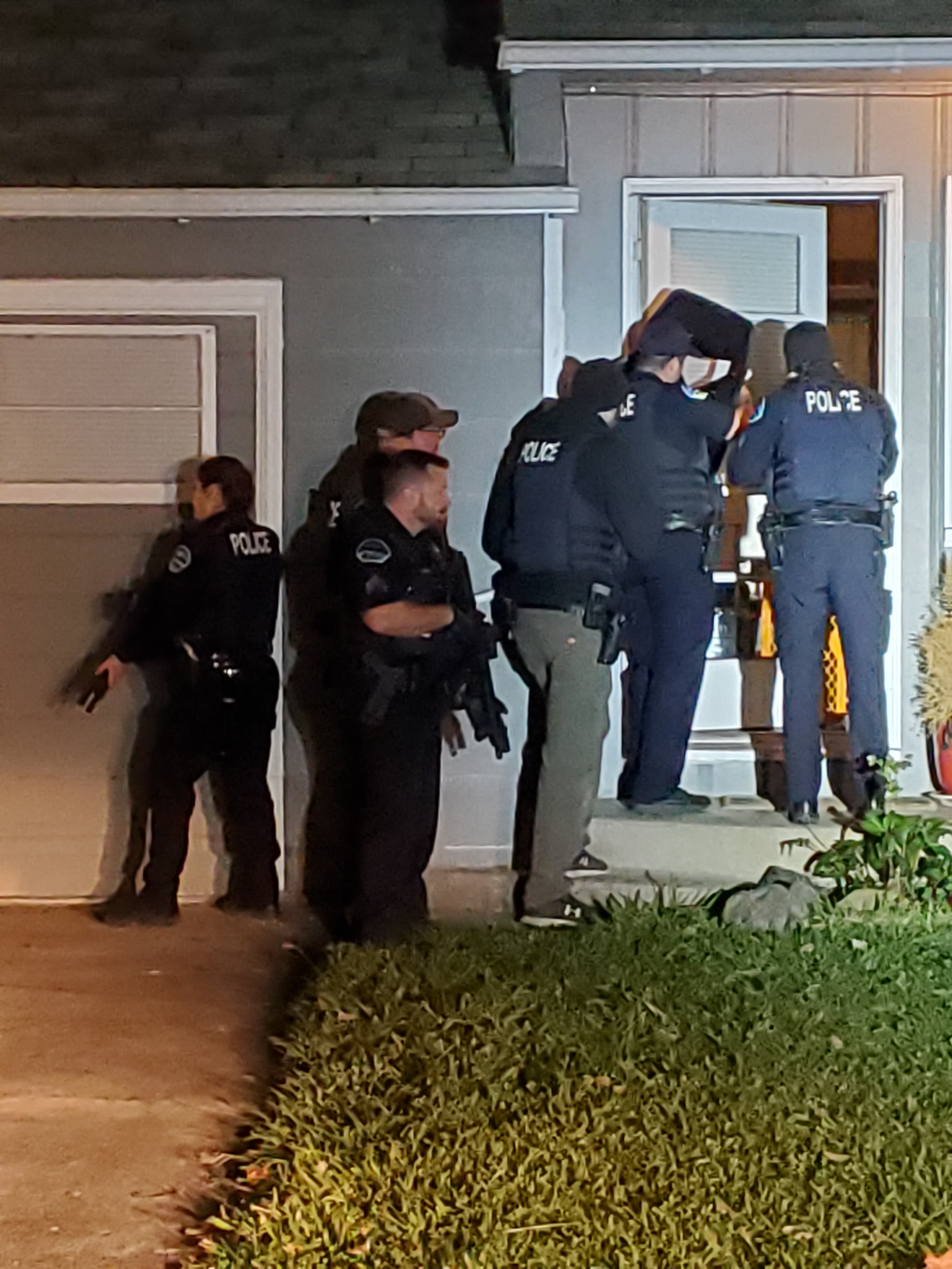 In the driveway of the residence, officers encountered the female caller who was loading her two small children into her vehicle. Officers evacuated the woman and both children to a safe location nearby. One of the male subjects involved in the fight was contacted at the residence and detained for questioning. The second male involved in the fight was unaccounted for and was identified as 32-year-old Matthew Bryan. Through the investigation that followed, it was believed Brian was armed and was the individual that fired several shots during the disturbance. It was unknown if Brian fled the residence as police were arriving. Police established a perimeter around the home to contain the situation.