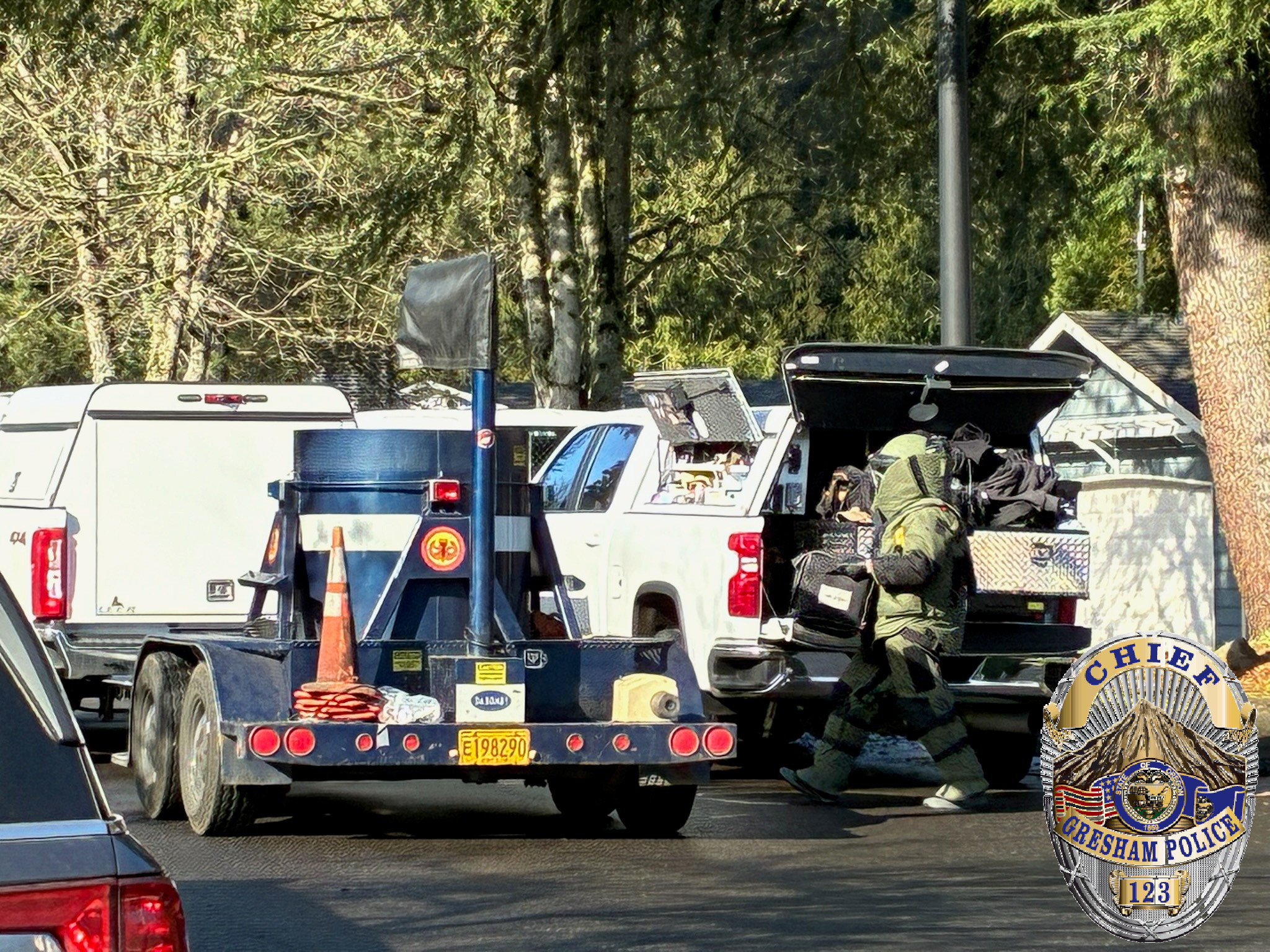 During service of the warrant officers discovered multiple homemade explosive devices. Investigators with the Metropolitan Explosive Disposal Unit and the Bureau of Alcohol, Tobacco, and Firearms responded to ensure the explosives were rendered safe. Metro EDU is an inter-agency explosive disposal unit led by the Portland Police Bureau, with officers and investigators contributed from numerous local agencies.