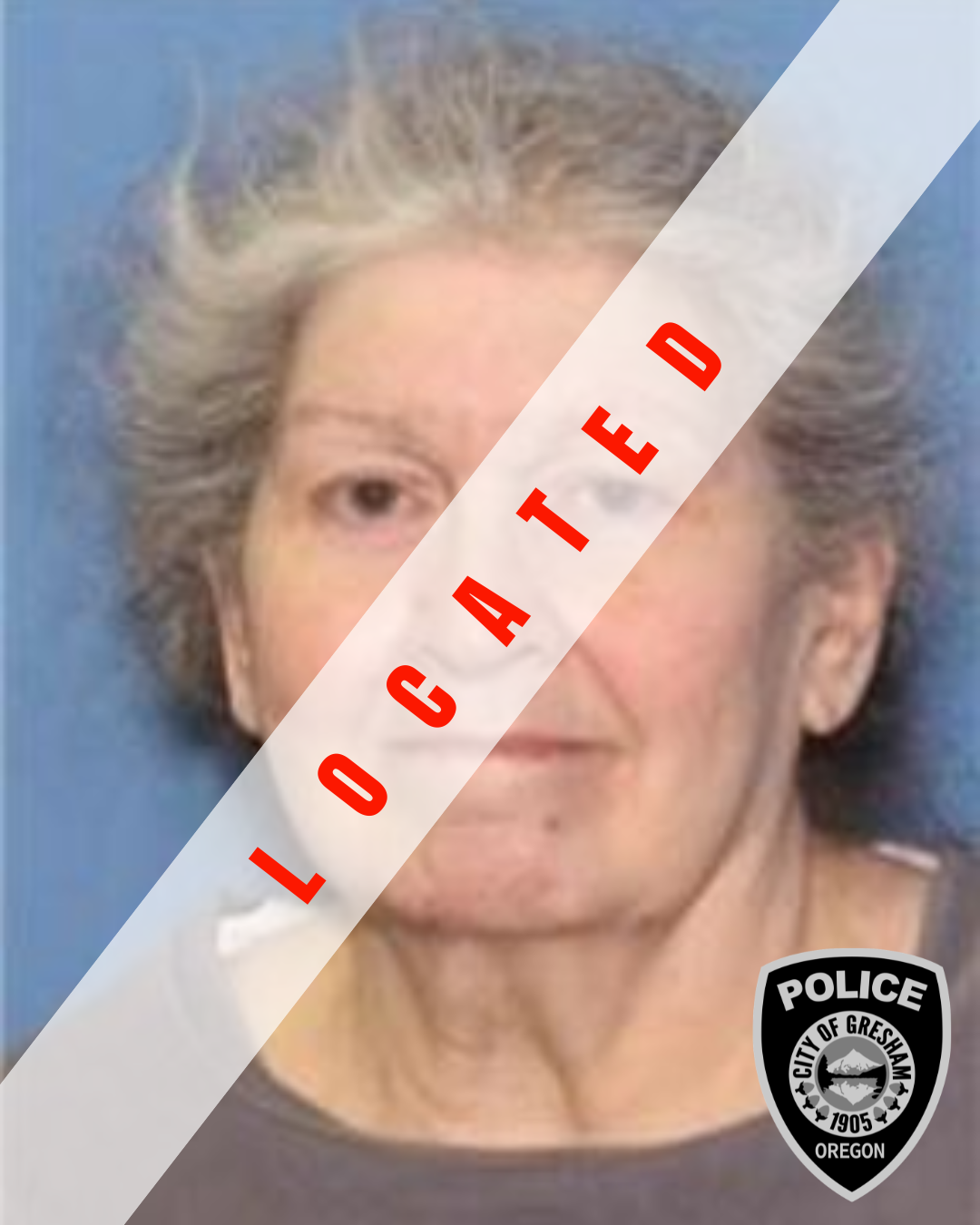 Gresham, Ore.—Gresham Police is asking for assistance from the public with locating a missing 74-year-old woman, Geraldine Parker. Staff at Geraldine’s assisted care facility reported she left at 6 p.m. yesterday, using a rideshare service to visit her son. The care facility is located in the 3900 block of SE 182 Ave. Staff is concerned because Geraldine has dementia, is missing her critical medication, and they have been unable to reach Geraldine’s son.