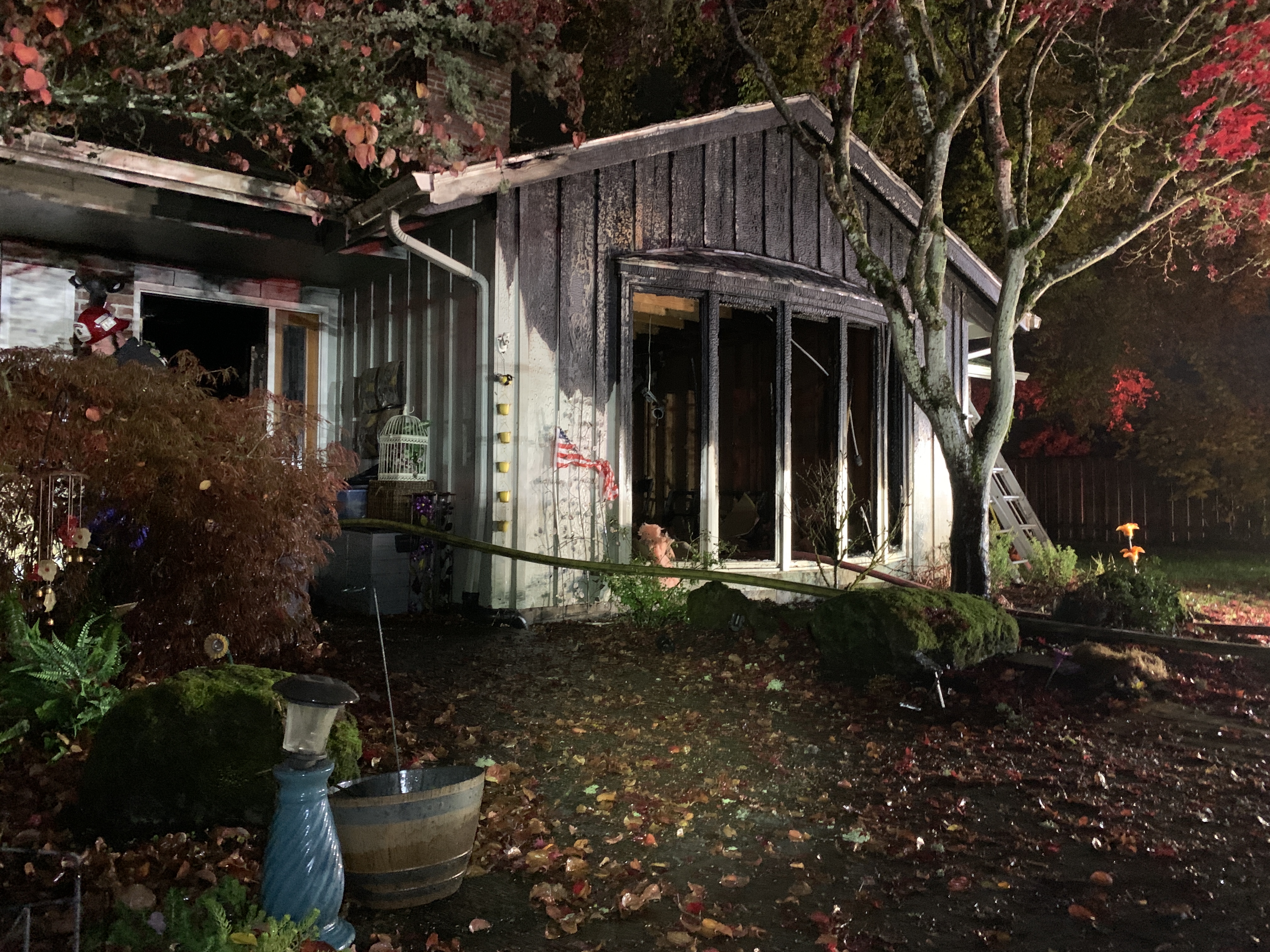 A Hillsboro Fire & Rescue incident commander arrived and found smoke emanating from the front of the house. The call was upgraded to a first alarm to bring additional resources to the scene. Arriving moments behind the incident commander, firefighters from Engine 5 initiated entry into the home with hose lines to search for and extinguish the fire. Simultaneously, firefighters from Truck 5 began searching for the occupants or pets in the house. Firefighters knocked down the fire burning through the home's front windows and spreading inside, where it was first reported. Additional crews accessed the roof to cut a ventilation hole to help clear heated gas and smoke, improving conditions for firefighters working inside. After the initial fire knockdown, firefighters continued their efforts through the home to search for and extinguish hot spots.