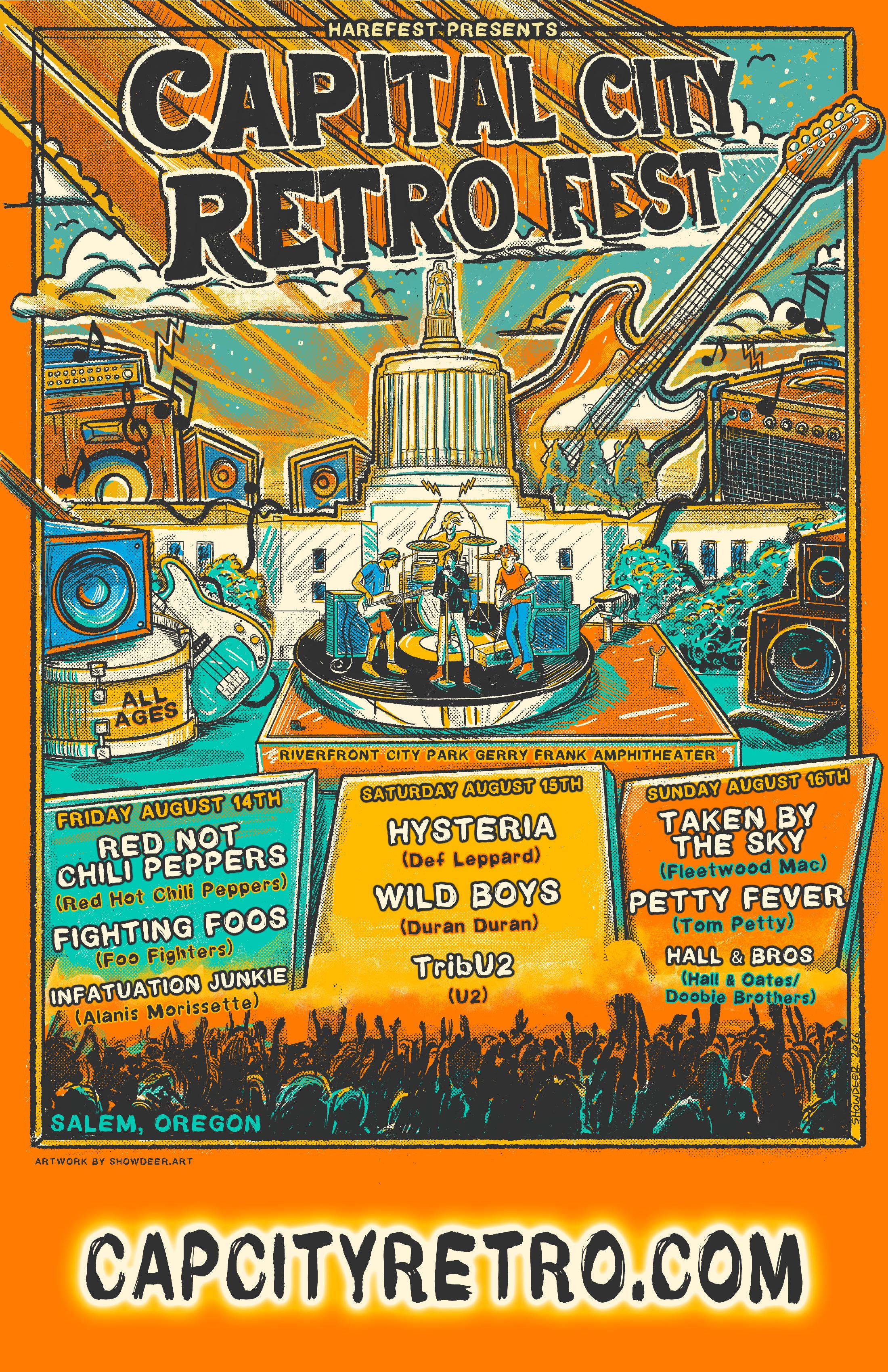 Salem, OR – March 30, 2026 – Capital City Retro Fest returns to Salem’s Waterfront Park for its second year, August 14–16, 2026 at the Gerry Frank Amphitheater. The three-night, all-ages tribute band festival follows a successful debut in 2025, where it was recognized by the Oregon Festivals and Events Association with an Ovation Award for “Music Festival of the Year.”