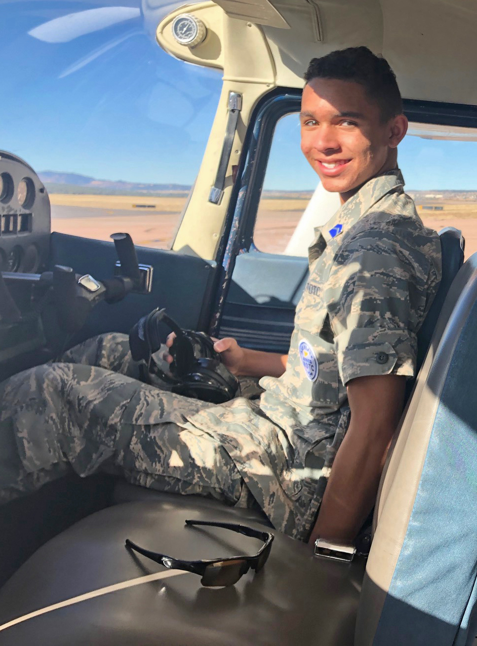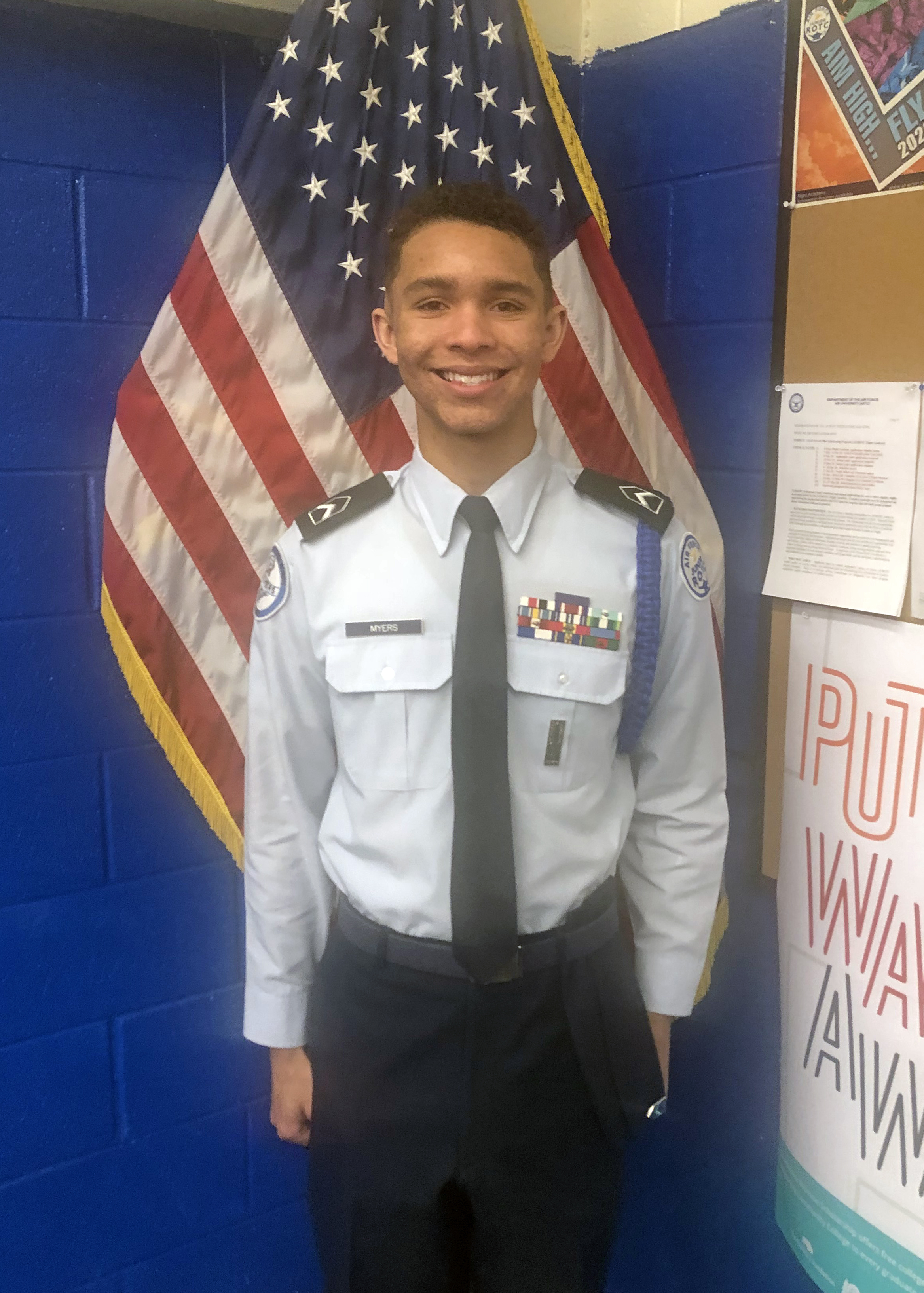 COLORADO SPRINGS – Jordan Myers, a junior Air Force Junior ROTC cadet at Harrison High School has received a scholarship to attend an accredited aviation university participating in a private pilot license training program in the summer of 2020.