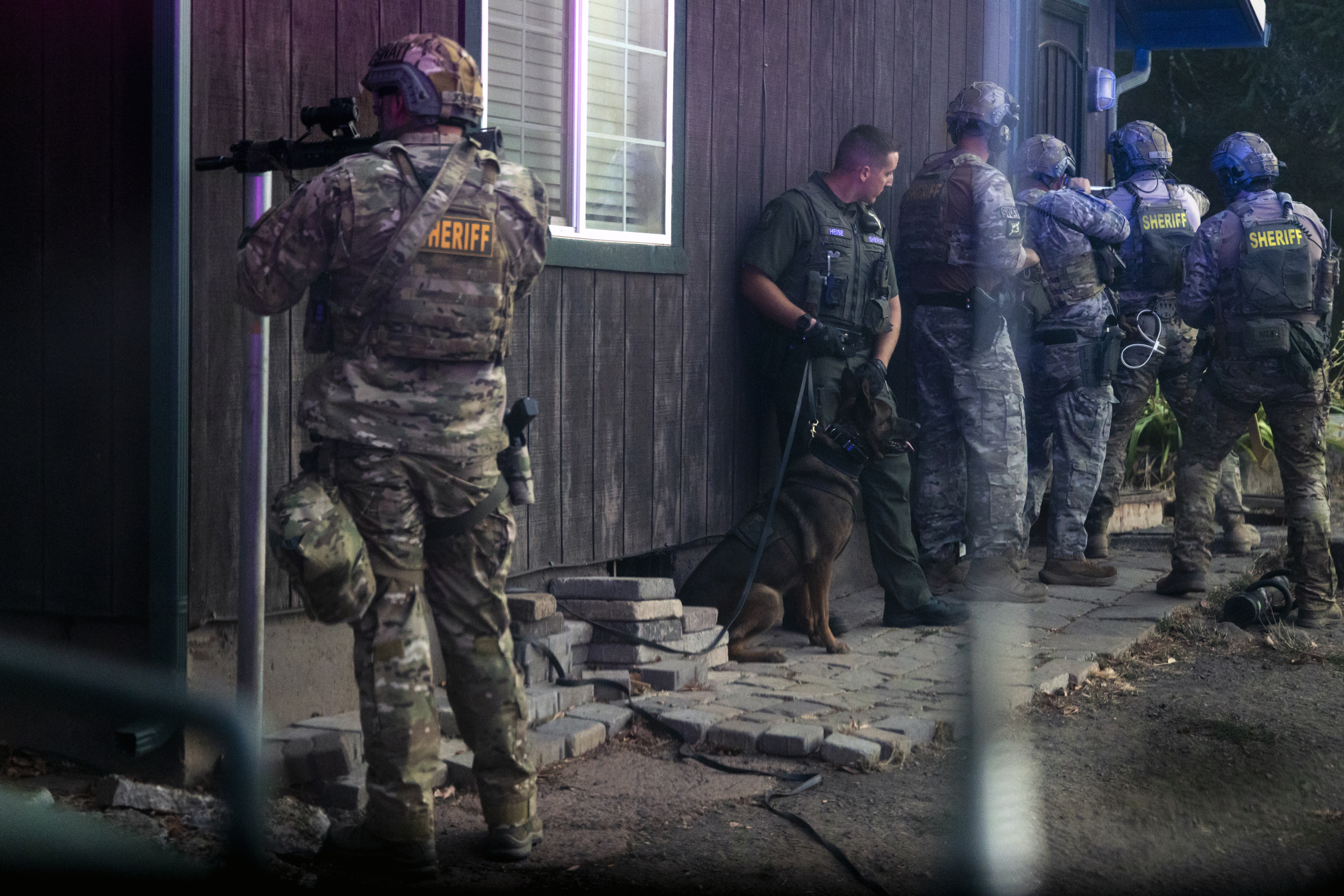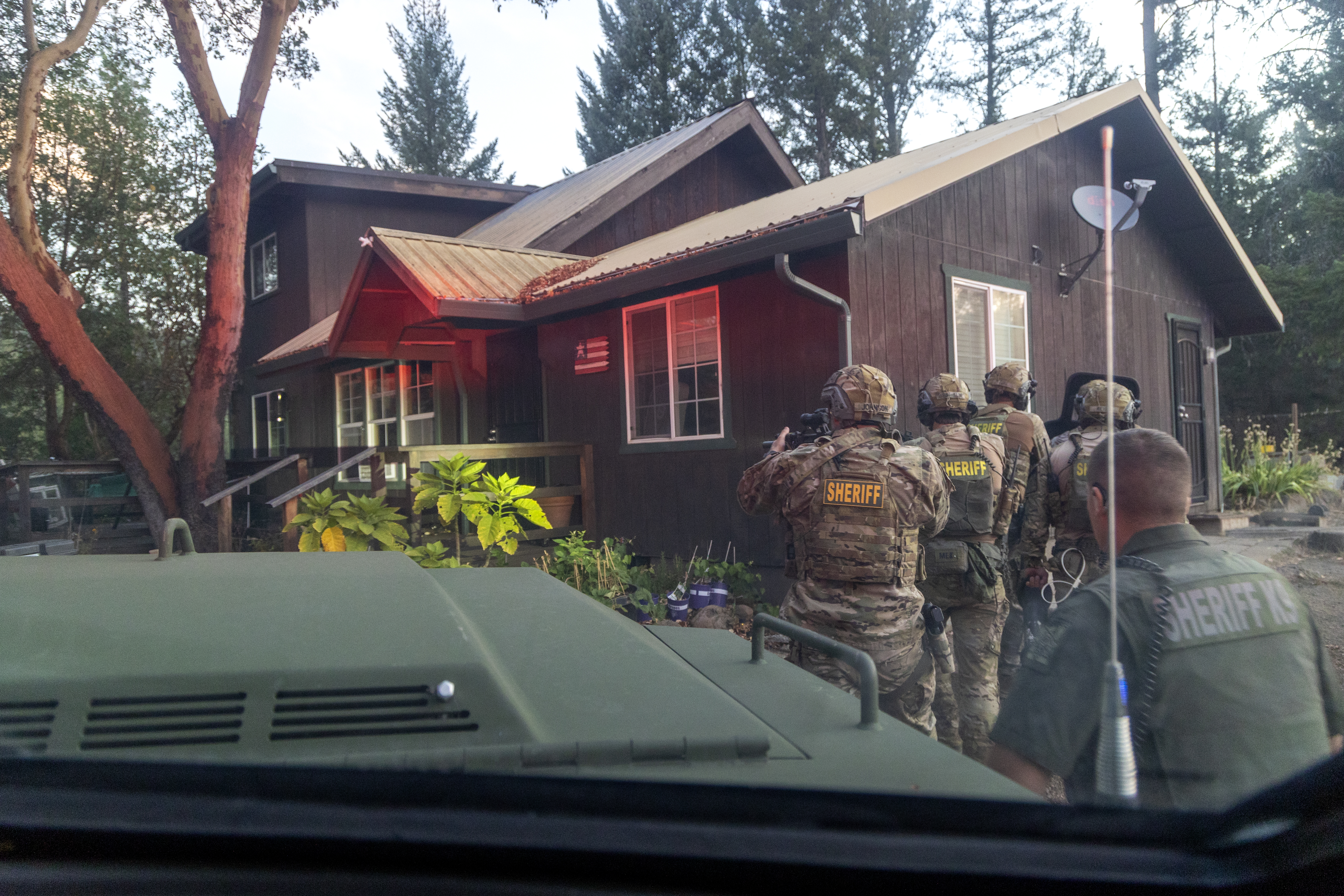 RURAL EAGLE POINT, Ore. - Jackson County Sheriff’s Office (JCSO) SWAT Team served a search warrant early yesterday morning at a residence on the 2000 block of Crowfoot Road outside of Eagle Point. JCSO Patrol utilized SWAT, K9, and the Crisis Negotiators Team (CNT) to serve the warrant due to firearm threats made by the suspect towards law enforcement.