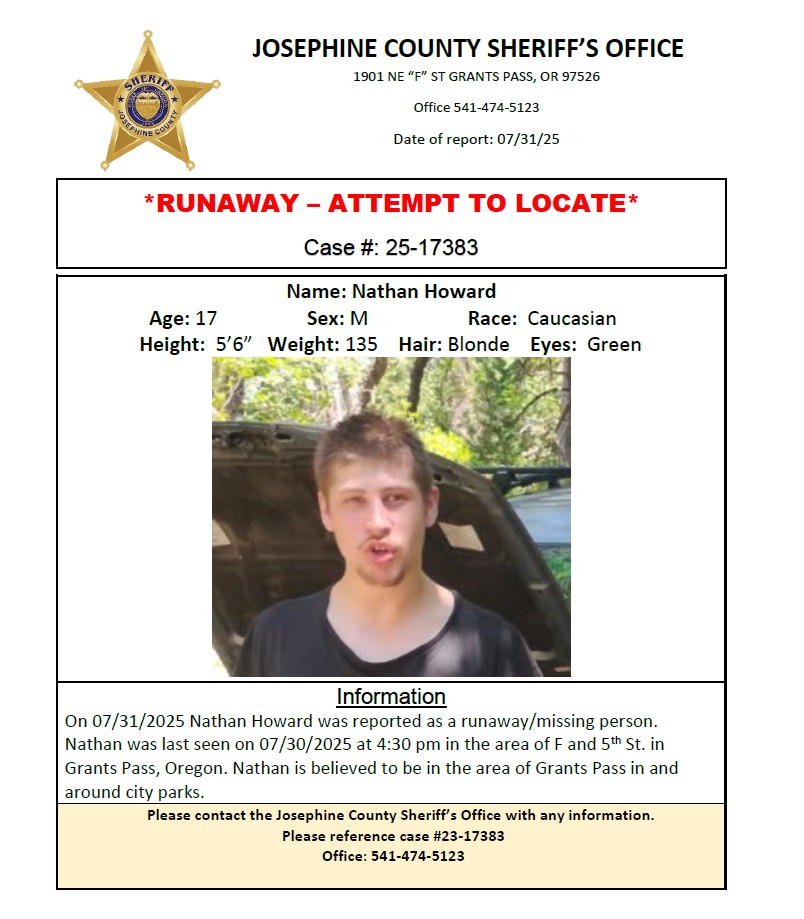 Please contact the Josephine County Sheriff’s Office with any information.