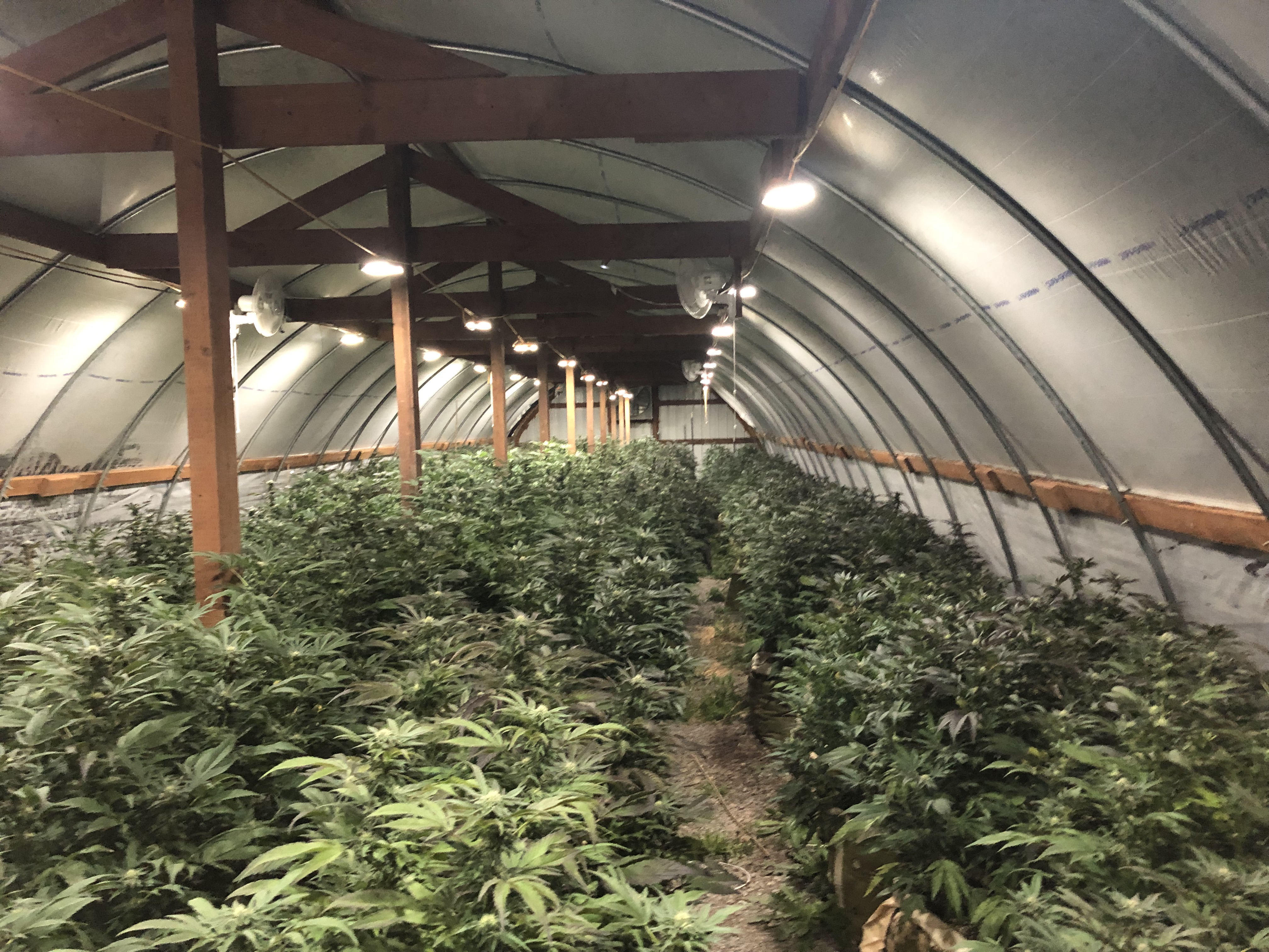 During the execution of the warrant approximately 2,400 marijuana plants were located inside multiple greenhouses on the property. The marijuana plants were seized and destroyed.