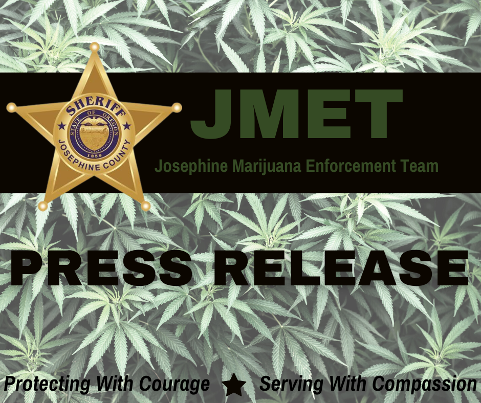 On October 17, 2022, the Josephine Marijuana Enforcement Team (JMET) executed a search warrant in the 1600 block of Cedar Flat Road in Josephine County regarding an illegal marijuana grow site. The search warrant was executed with the assistance of Rogue Area Drug Enforcement (RADE) and Josephine County Code Enforcement.
