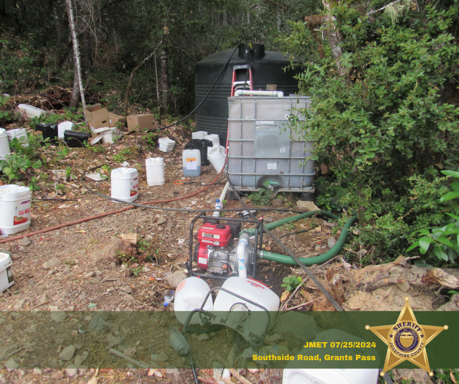 DETAILS: On July 25, 2024, the Josephine Marijuana Enforcement Team (JMET) with the assistance of Josephine County Public Health & Building Safety, executed a search warrant in the 3000 Block of Southside Road, Grants Pass, regarding an illegal marijuana grow site.