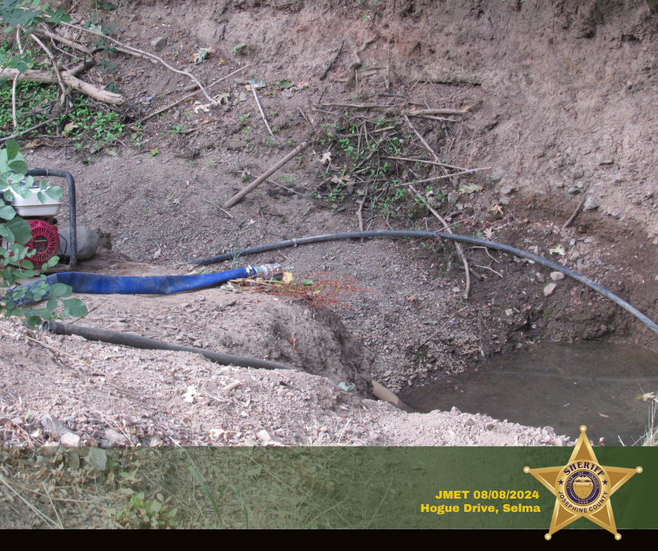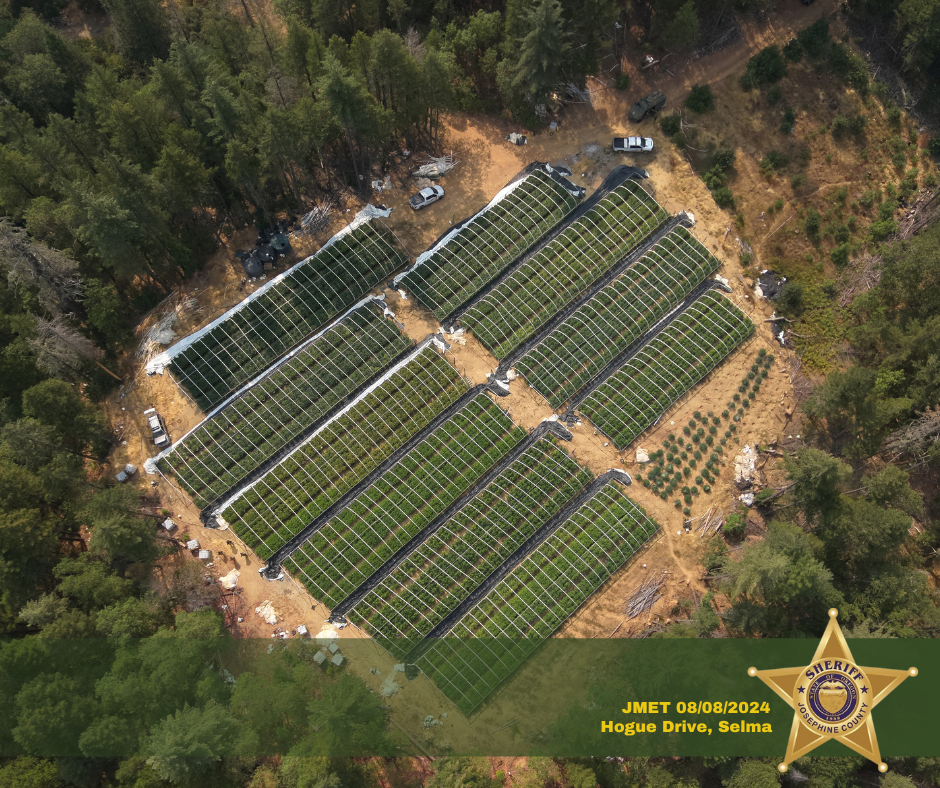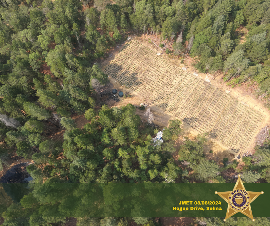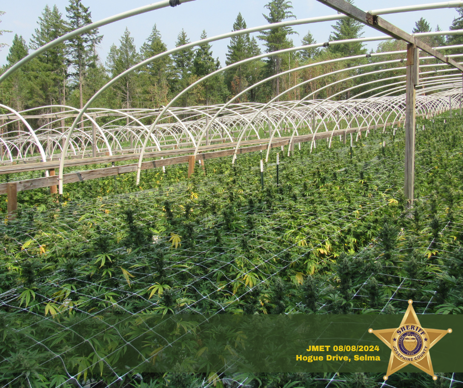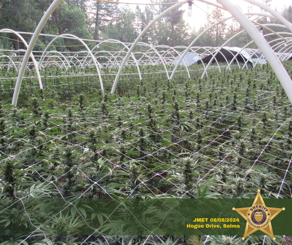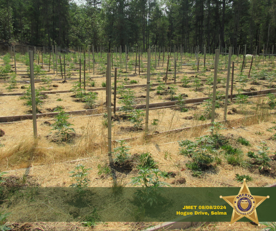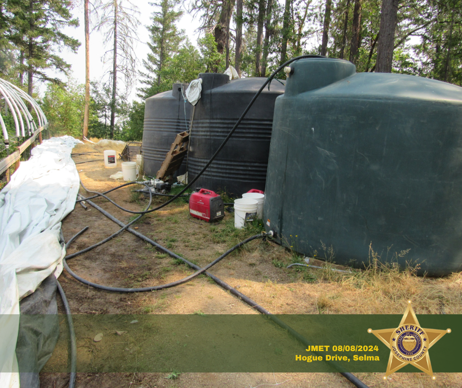 DETAILS: On August 8, 2024, the Josephine Marijuana Enforcement Team (JMET) with the assistance of Josephine County Public Health & Building Safety, executed three search warrants on Hogue Drive, Selma, regarding three separate illegal marijuana grow sites. Although all properties were close in proximity, they were not connected, and each operation belonged to a separate group. At least one of the marijuana operations is believed to be connected to an interstate drug trafficking organization.