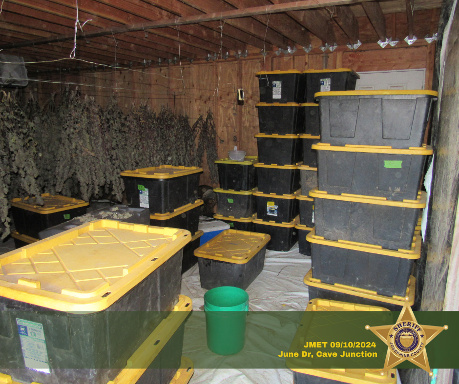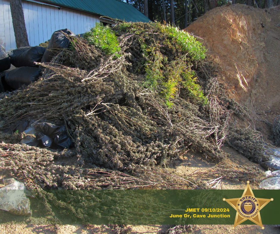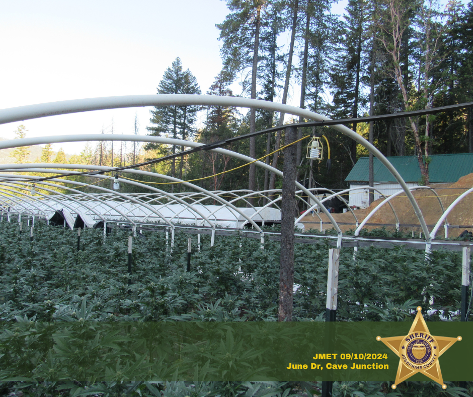 DETAILS: On September 10, 2024, the Josephine Marijuana Enforcement Team (JMET) with the assistance of Josephine County Public Health & Building Safety, executed a search warrant on June Drive, Cave Junction, regarding an illegal marijuana grow site.