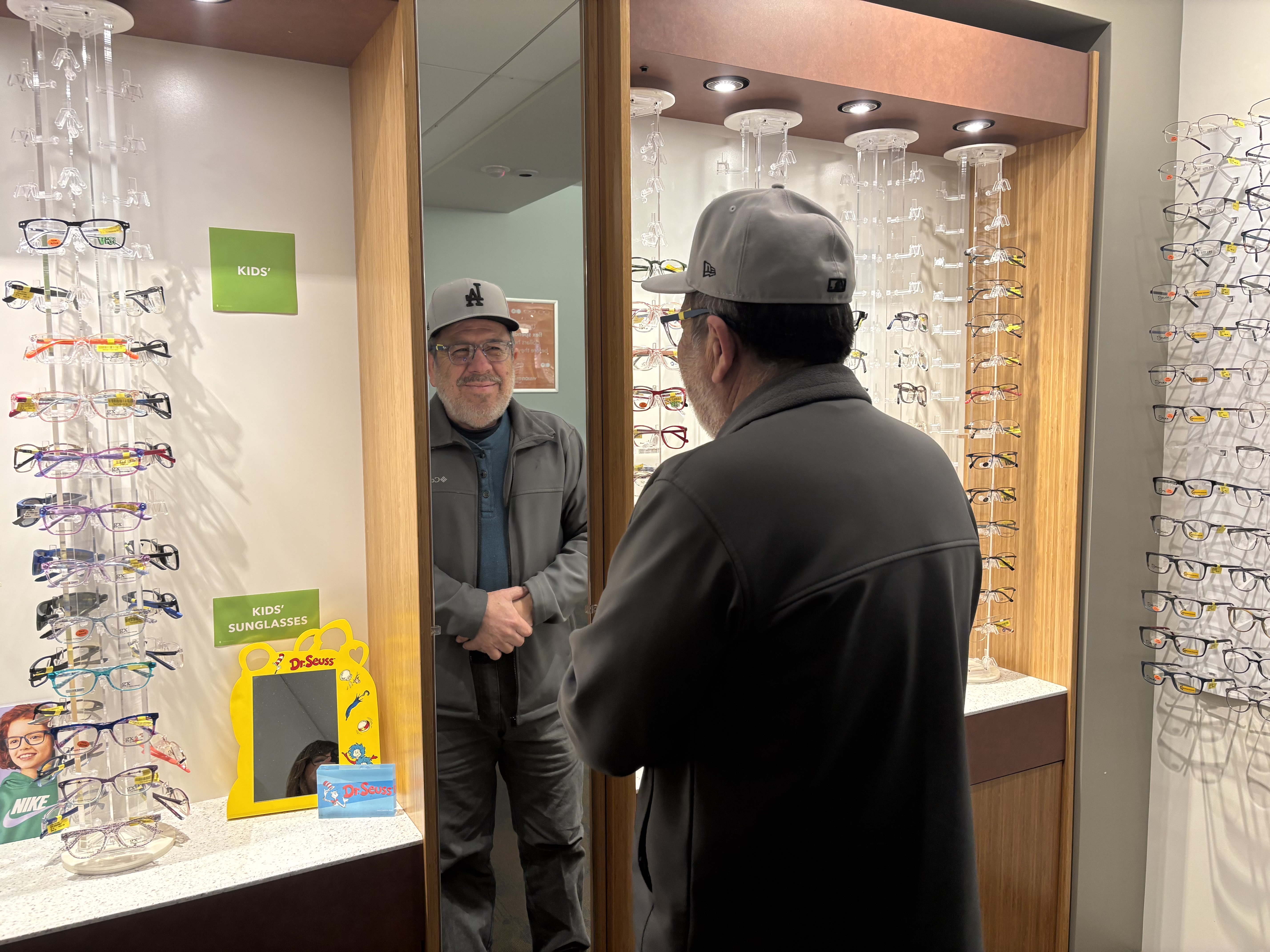 Molina was referred to the clinic by Free Clinics of Southwest Washington and attended the appointment with his daughter, Karen Molina, who helped him get there, communicate his needs, and choose his new glasses. Molina's previous grocery store reading glasses were broken and no longer effective, in part because the vision in each of his eyes is different. Molina said he has three of "the best" daughters and smiled as he credited Karen’s help, adding simply, "She loves me."