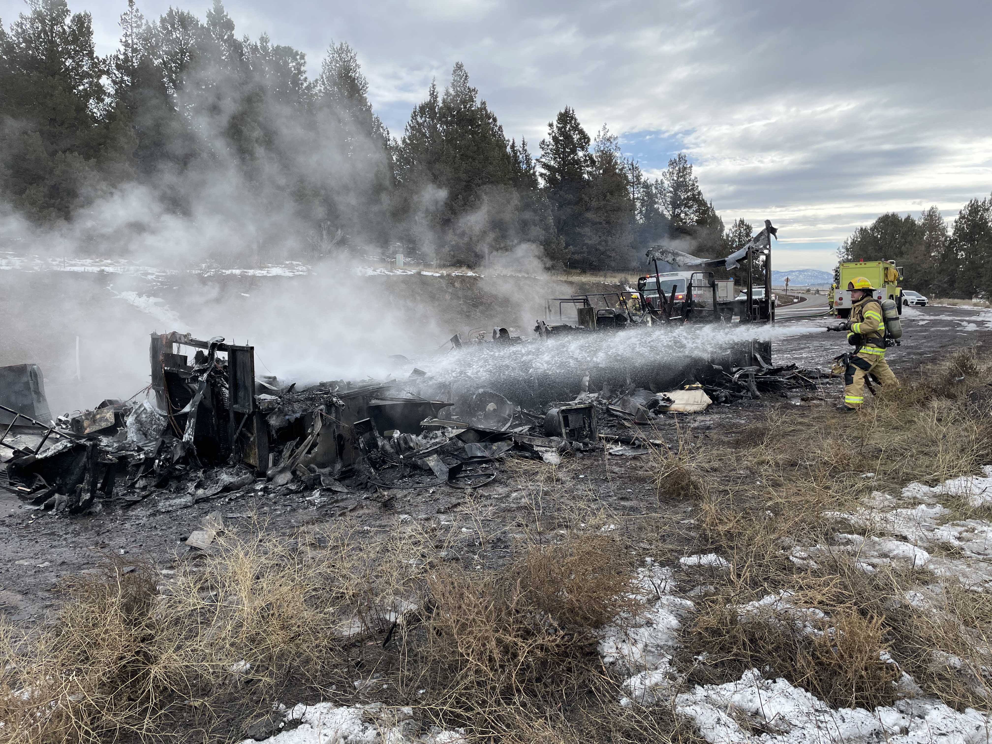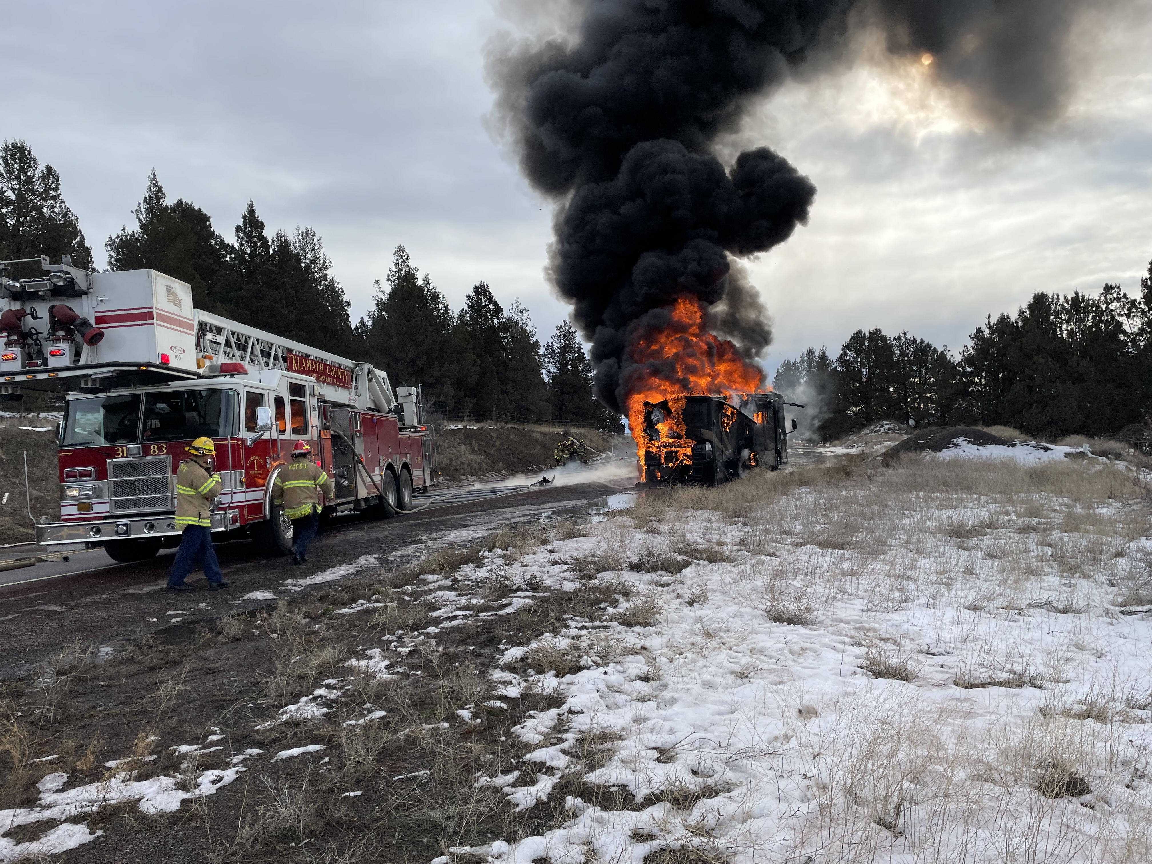 Large RV Fire Closes Hwy 140 East Of Klamath Falls (Photo)