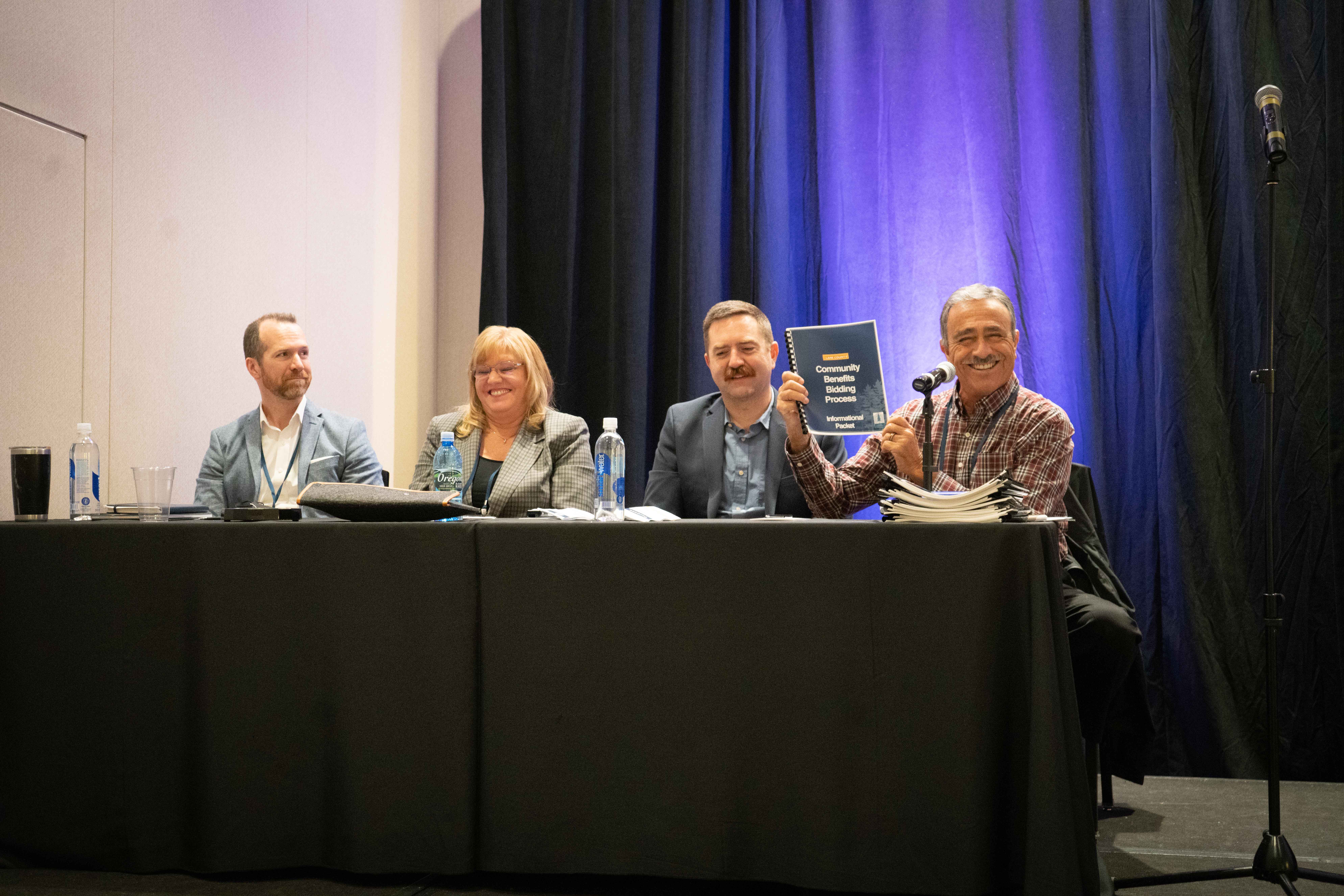 Lane County Board of Commissioners Chair Joe Berney, joined by County staff and local trade representatives at the 2021 Association of Oregon Counties Annual Conference, provided counties across Oregon with a blueprint for creating their own Community Benefits Bidding Programs.