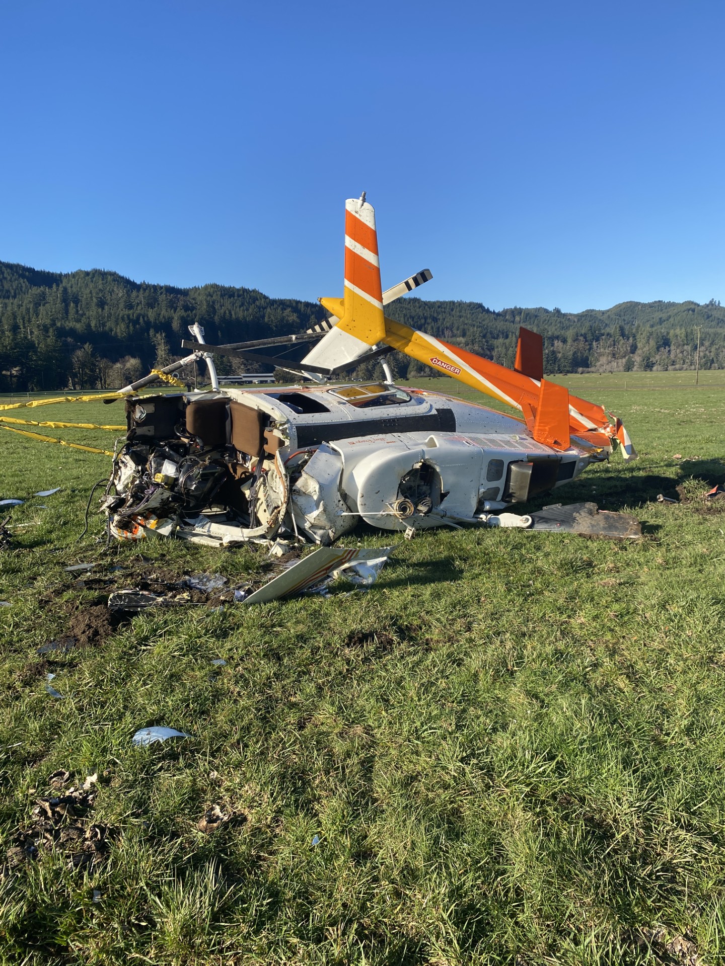 On January 15, 2026, at approximately 08:37am, The Lincoln County Sheriff’s Office received reports of an unknown crash near the 2800 block of Moonshine Park Rd in Logsden, OR. While enroute, Deputies learned the incident involved a helicopter, which crashed into a cow pasture. The crash did not physically harm nearby structures, individuals, or livestock. There is no ongoing threat to the community.
