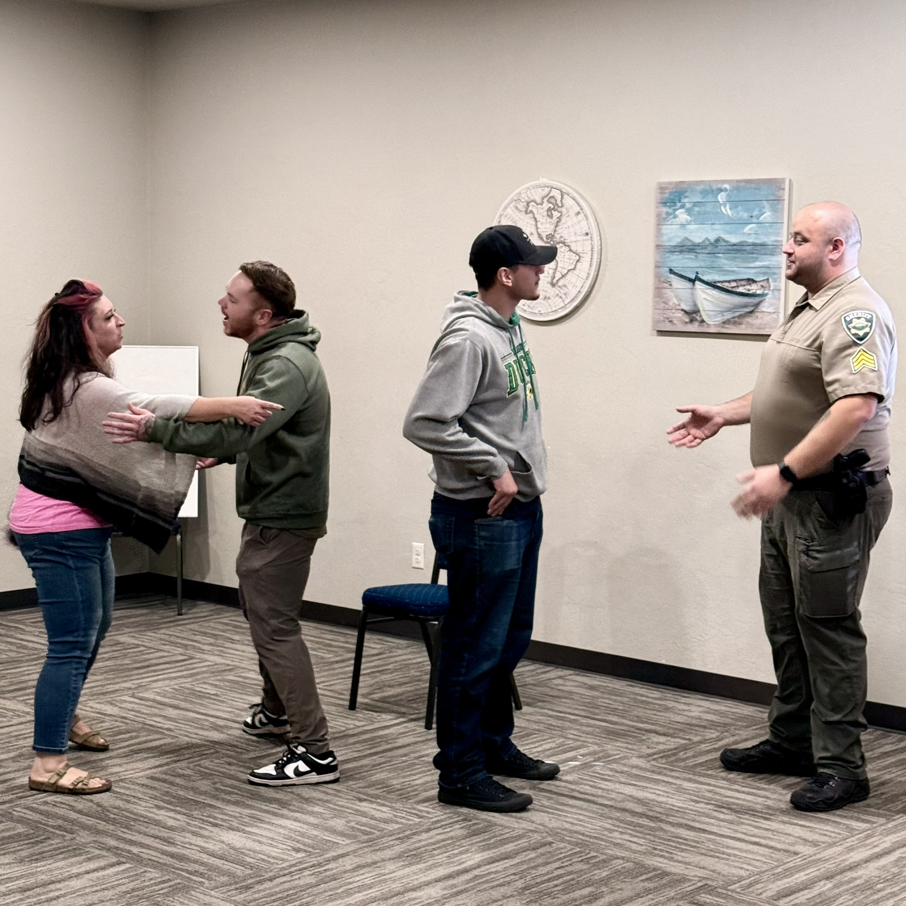 The training includes discussions specific to unique communities law enforcement officers may encounter, such as military veterans, members of the LGBTQIA+ community, and developmentally disabled individuals. Near the end of the week of training, attendees participate in scenario training based off of real situations. Finally, the training concludes with a segment on officer resilience and mental wellness.