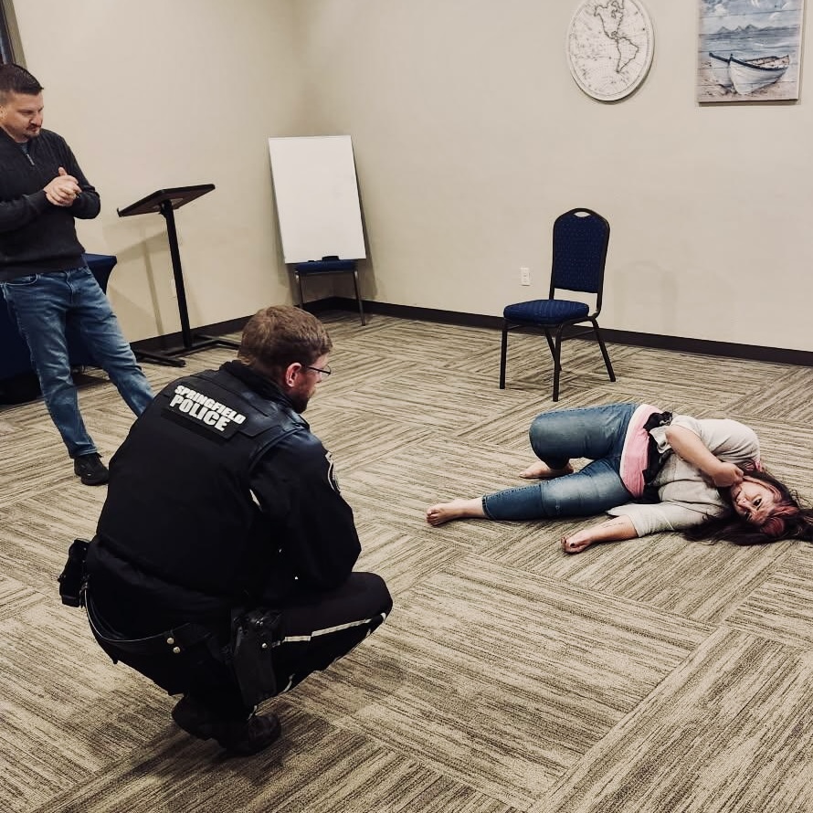 This week, the Lane County Regional Crisis Intervention Team hosted a 40-hour Crisis Intervention Team (CIT) training at the Springfield Police Department and Hillview Baptist Church in Springfield. This regional training is offered to local law enforcement agencies in Lane County. The Regional Crisis Intervention Team is made up of coordinators from the Lane County Sheriff’s Office, the Eugene Police Department, and the Springfield Police Department. The team is assisted by a steering committee made up of stakeholders in the local mental health community. Last month’s training attendees included personnel from the Springfield Police Department, Lane County Sheriff’s Office, Eugene Police Department, Junction City Police Department, Willamalane Parks and Recreation District, Lane Transit District, and Atlas Protection Agency (private security).
