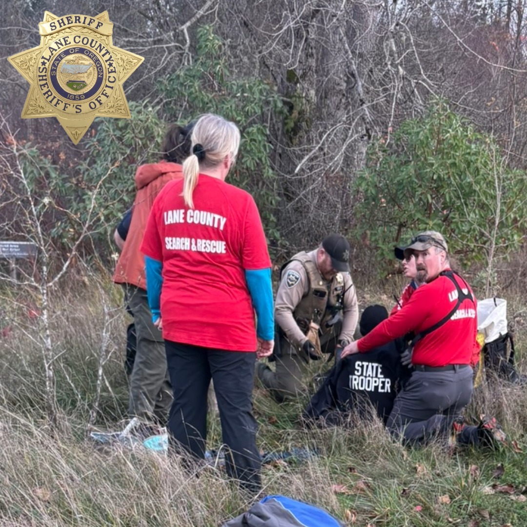 Lane County Sheriff’s Search & Rescue (SAR) volunteers and K9s were called out, and an Oregon State Trooper who was in the area arrived with K9 Buck, an article search and tracking canine. Both a deputy and a Eugene Police officer responded with drones to assist in the search.