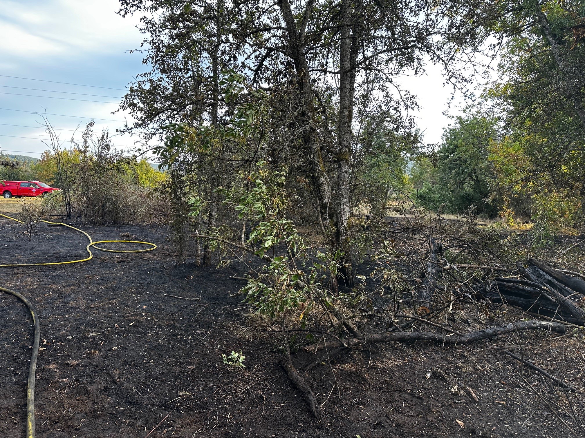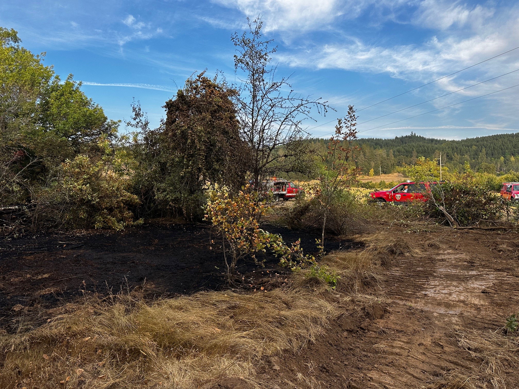 Lebanon Fire District responded to a reported large natural cover fire in the early evening of Friday, August 29, 2025. The fire in the 3100 block of Sodaville Road was reported by the landowner as a small fire in a field that quickly grew to three acres when fire crews had arrived but now was involving brush and trees. Firefighters quickly went to work at the head of the fire slowing its progress. The incident commander called for a 2nd Alarm upgrade for additional type 6 brush engines to assist in the suppression. Oregon Department of Forestry was also on the scene with multiple engines and a dozer which was used to suppress and construct fire line on the west end of fire. Firefighters had forward progress of the fire stopped approximately 20 minutes after arrival and stayed on scene multiple hours mopping up hotspots in the area. Lebanon firefighters also deployed a drone to fly the area using thermal imaging to help locate additional hotspots. No injuries were reported, but several firefighters complained of receiving multiple stings after encountering angry bees as their nests were being disturbed.