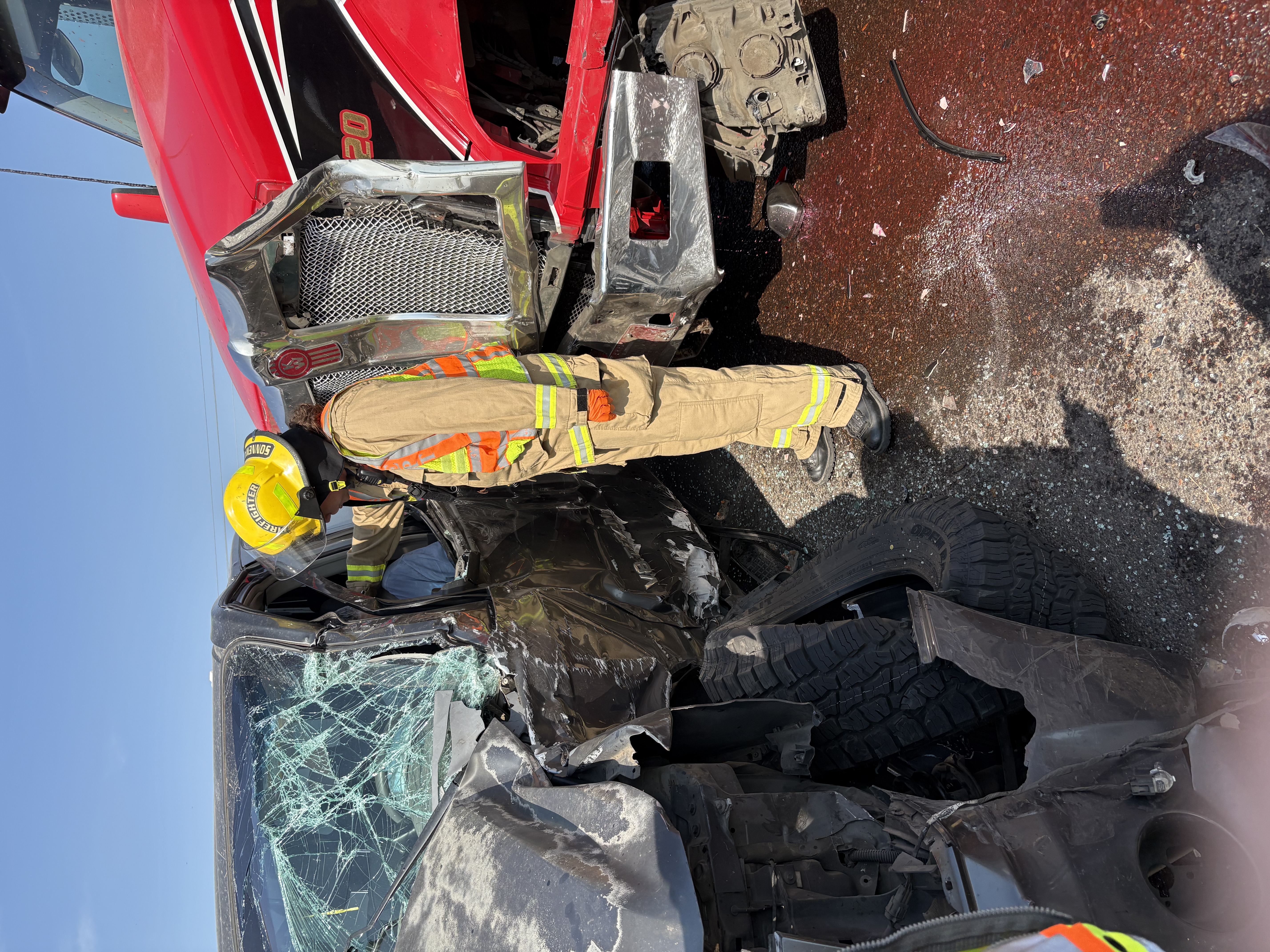 On arrival, crews found a small pickup with heavy driver’s side damage. The occupant was injured and unable to get out. Firefighters worked together to use hydraulic tools to open the door and remove the driver. The extrication took 13 minutes, after which the patient was transported to Good Samaritan Regional Medical Center.