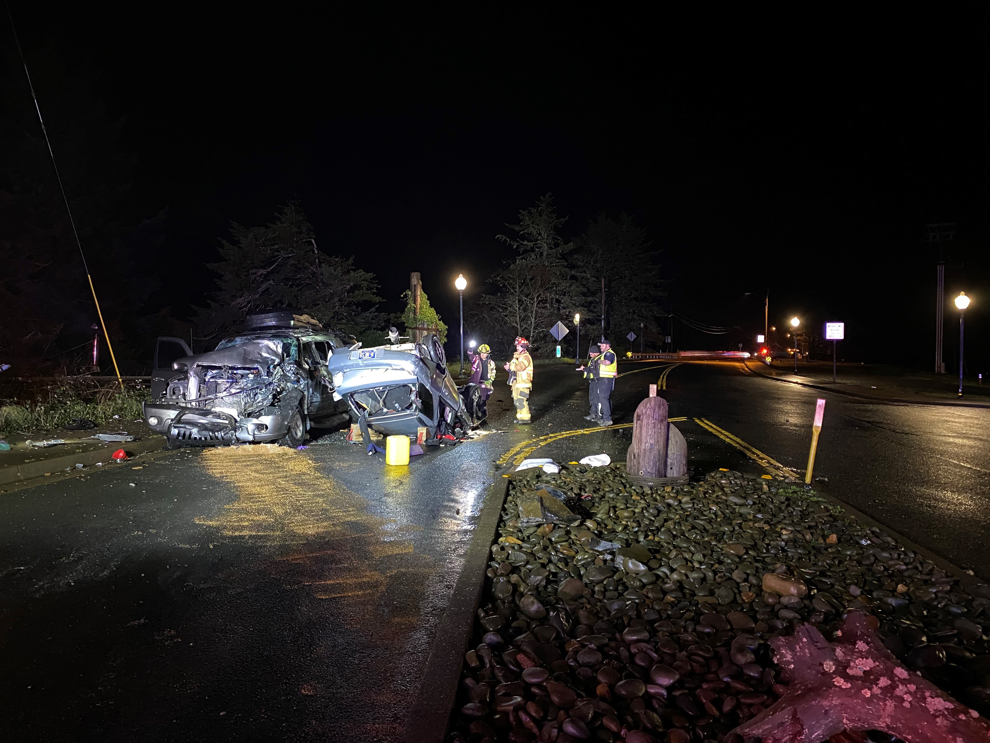 On January 16, 2024 around 8:25 PM, Lincoln City Police Officers responded to a serious motor vehicle crash on S Highway 101 near S 51st Street. Upon arrival, they found the two involved vehicles, a silver Subaru WRX and a black Toyota Sequoia SUV, had sustained extensive damage as a result of the collision.