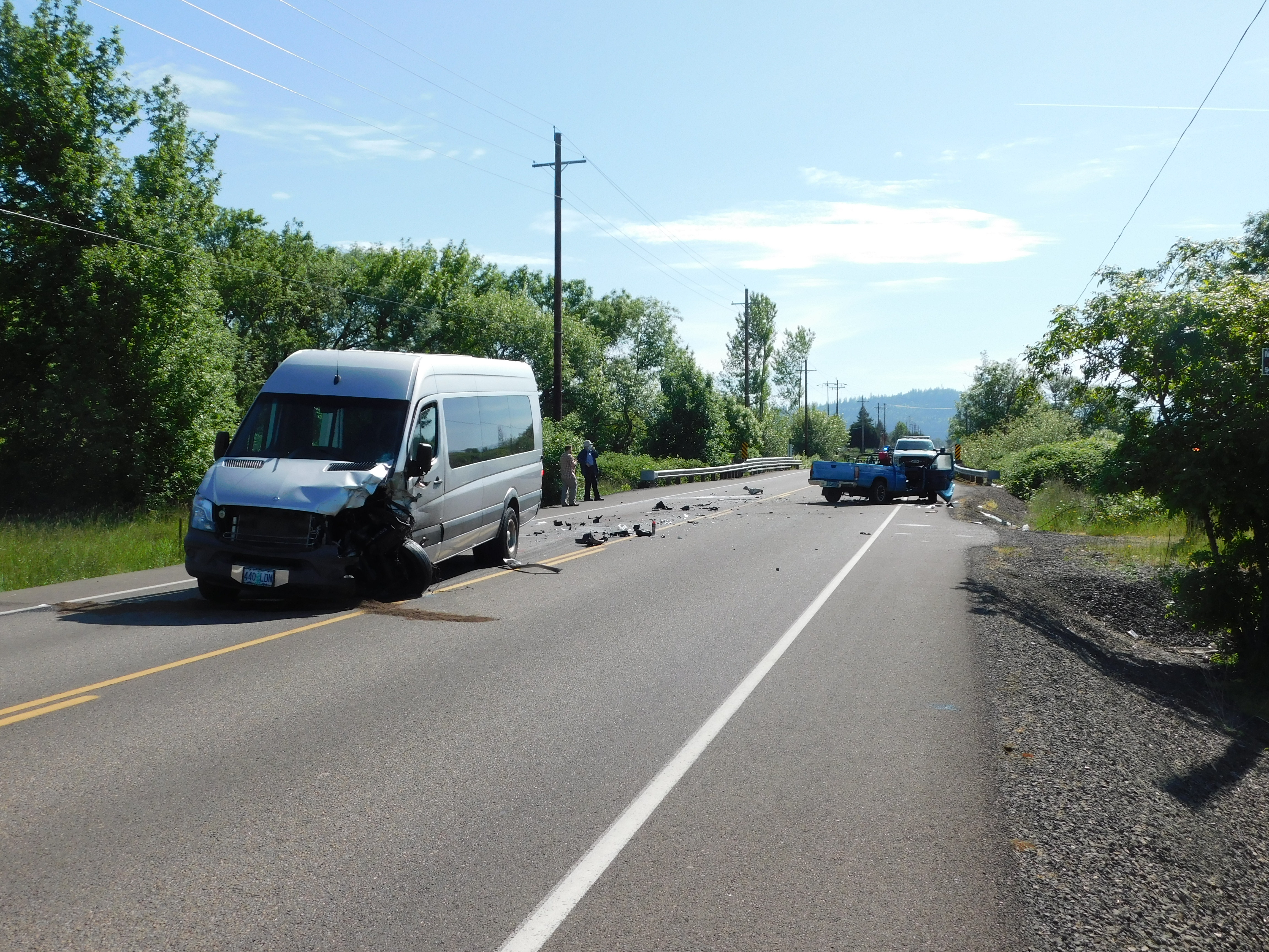 The investigation revealed Daniel Bates III, 48, of Lebanon and 10 children traveling to Central Valley Christian School were struck head on by Katherine Stark, 47, of Corvallis. Stark was driving a 1989 Nissan D21 pickup east on Airport Road when she entered the westbound lane striking the 2014 Mercedes Sprinter Van driven by Bates.