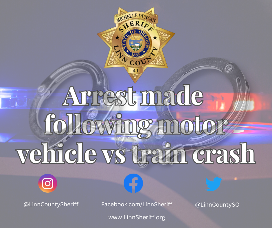 Linn County Sheriff Michelle Duncan reports on March 14, 2026, at approximately 3:47 a.m., the Linn County Sheriff’s Office Dispatch Center received a 911 call of a motor vehicle versus train crash at the intersection of Powerline Rd and Hwy 99 near Harrisburg, Linn County, Oregon.