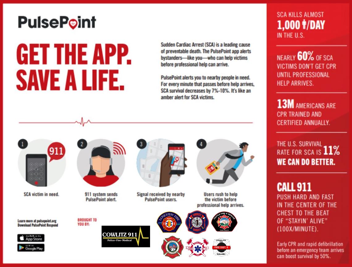 Cowlitz County, WA – Local fire departments and districts announce the official launch of PulsePoint, a mobile phone application (PulsePoint app) designed to enhance community awareness of medical emergencies and promptly notify nearby CPR-trained individuals to provide assistance to cardiac arrest victims.
