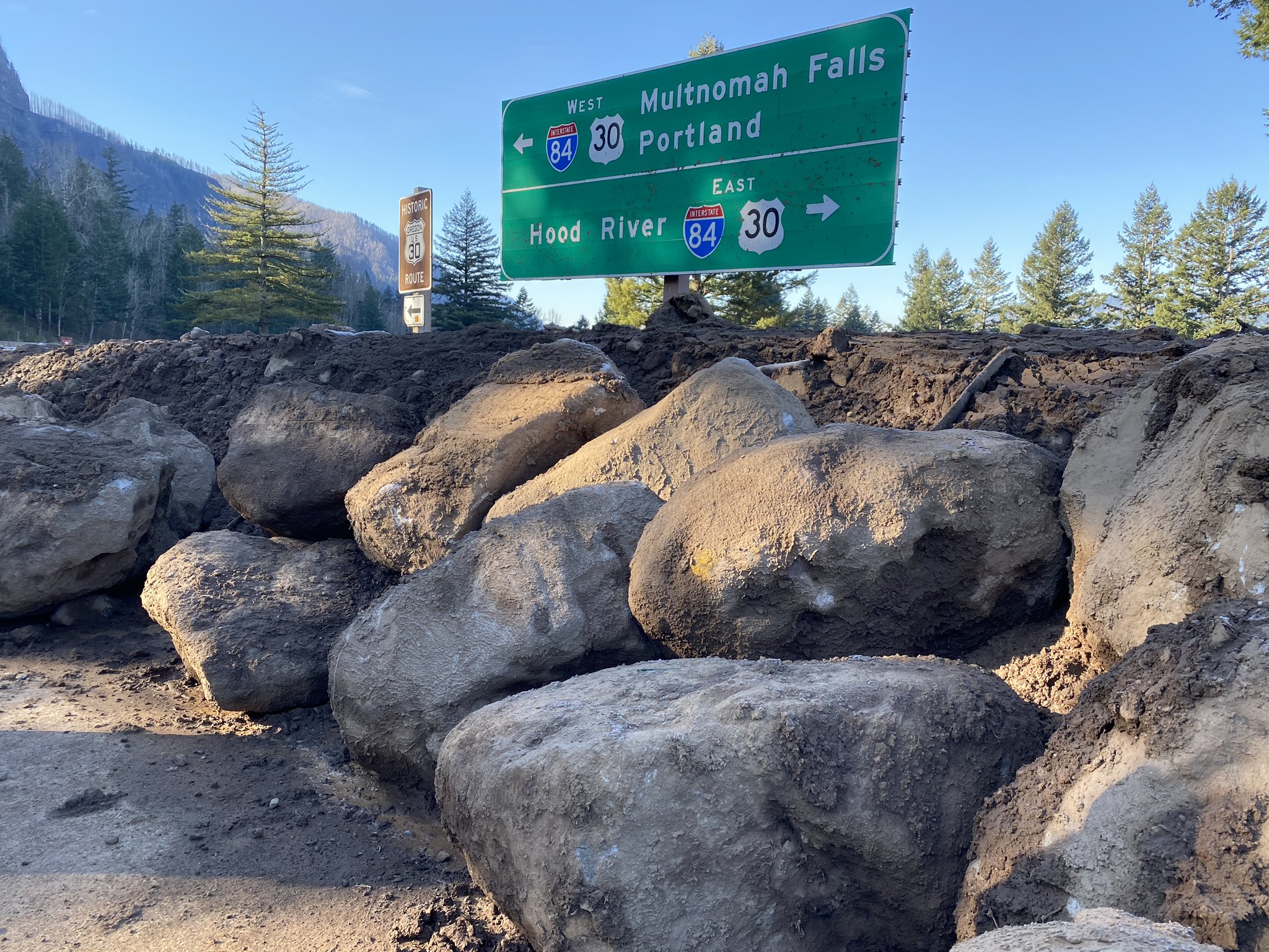 The Oregon Department of Transportation will continue to clear and remove tons of debris from the roadway and surrounding area. The Ainsworth State Park exit and NE Frontage Road remain closed. For road information, visit TripCheck.com.
