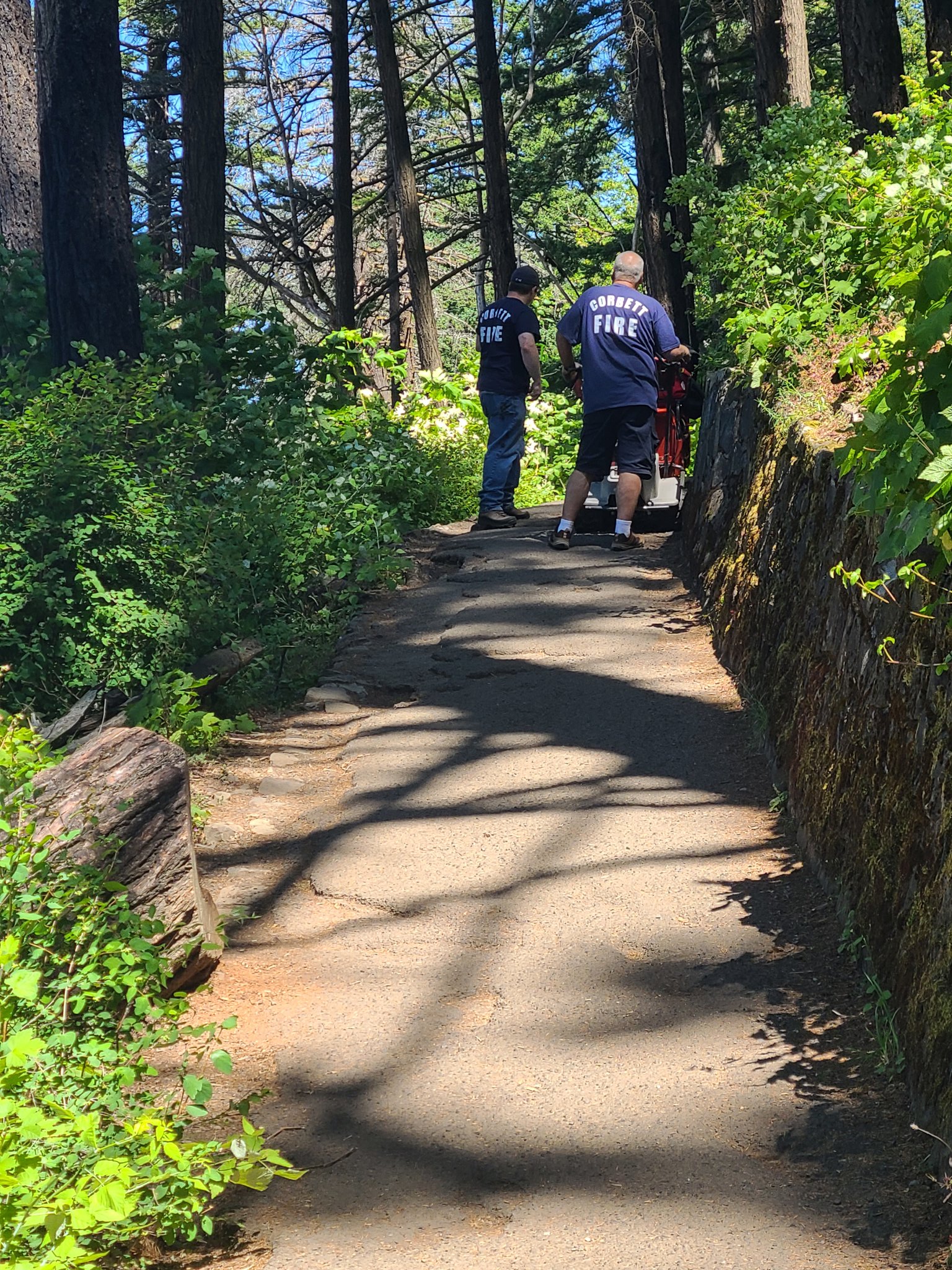 Image Courtesy: Corbett Fire District 14, preparing rope rescue equipment on the Multnomah Falls trail