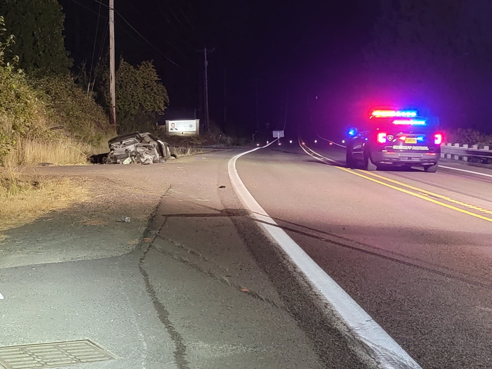 The Canby Police sergeant came upon the crash a short time later where witnesses had already stopped to attempt to help the occupants of the Porsche. The Porsche had partially caught fire which was extinguished by the Canby Police.
