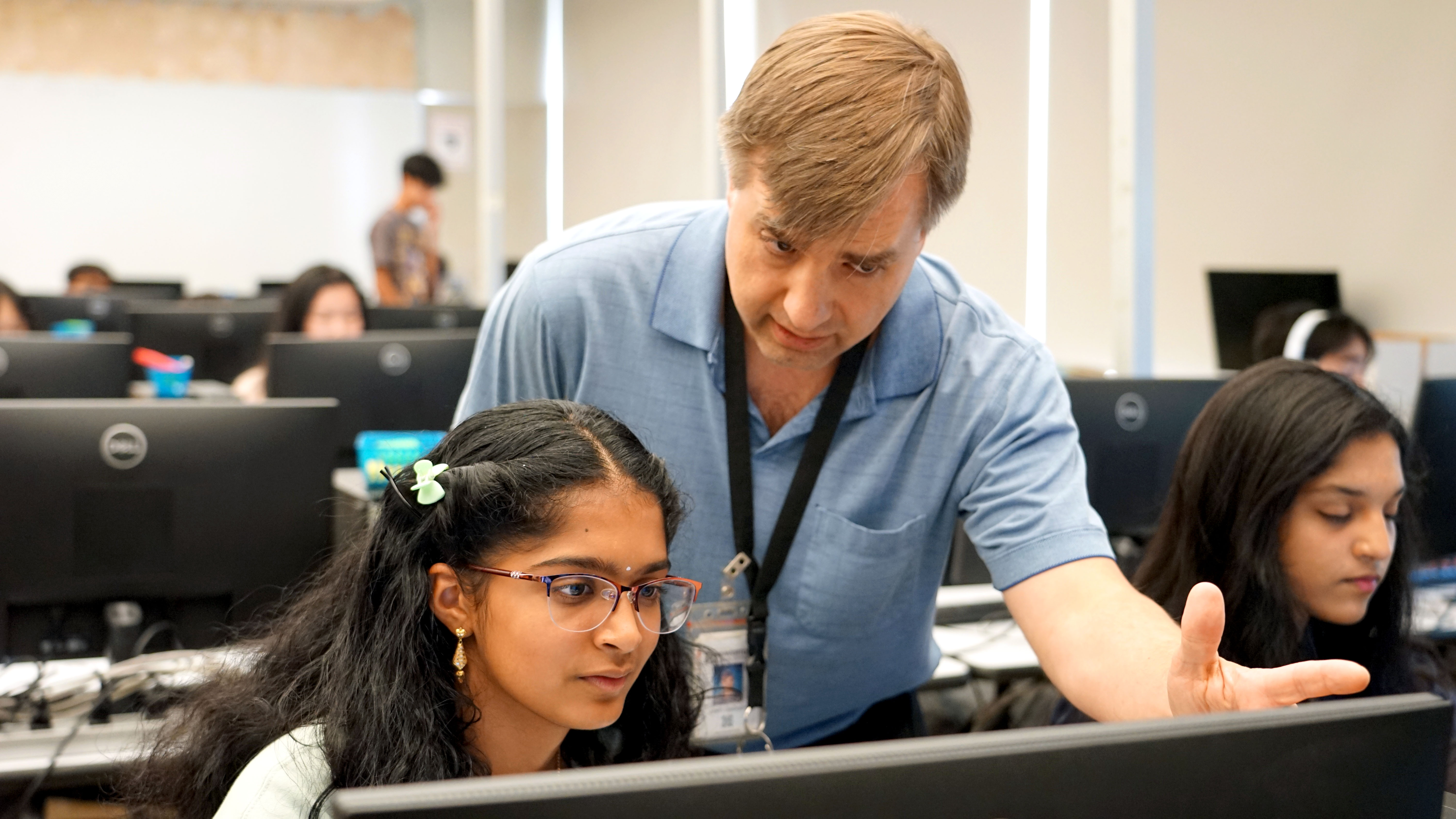One of Galbraith’s hallmarks is using a hybrid flipped-classroom model, where his hundreds of self-created tutorials and videos allow students to learn at their own pace. This frees class time for him to provide one-on-one support, even while teaching multiple courses and grade levels in the same period. His students not only learn to code — they also gain confidence, resilience, and bravery in tackling difficult challenges.