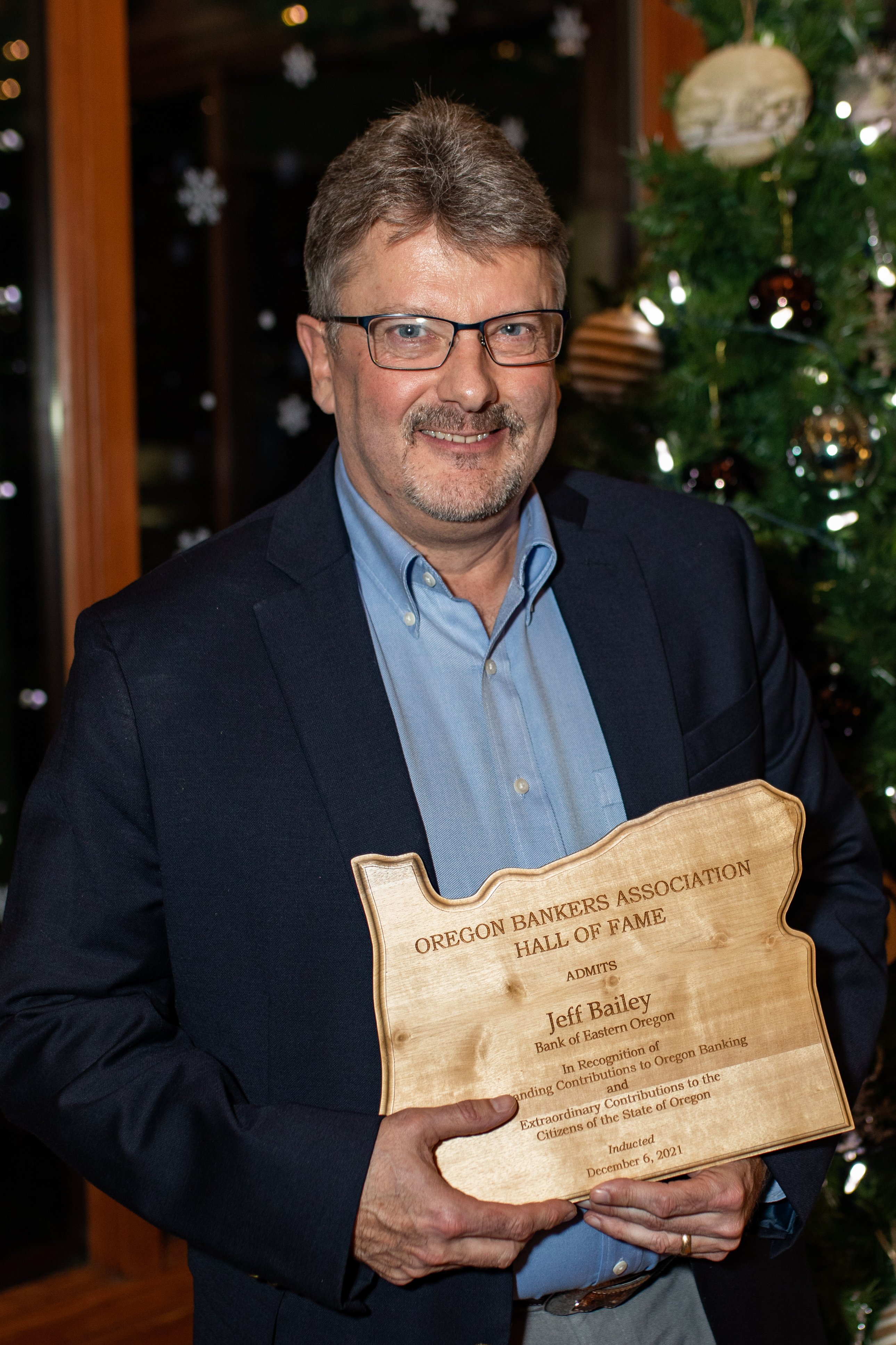 The Oregon Bankers Association (OBA) inducted Jeff Bailey, president and CEO of Bank of Eastern Oregon in Heppner, into the Oregon Bankers Hall of Fame during the Oregon Bank Leadership Symposium held in December.