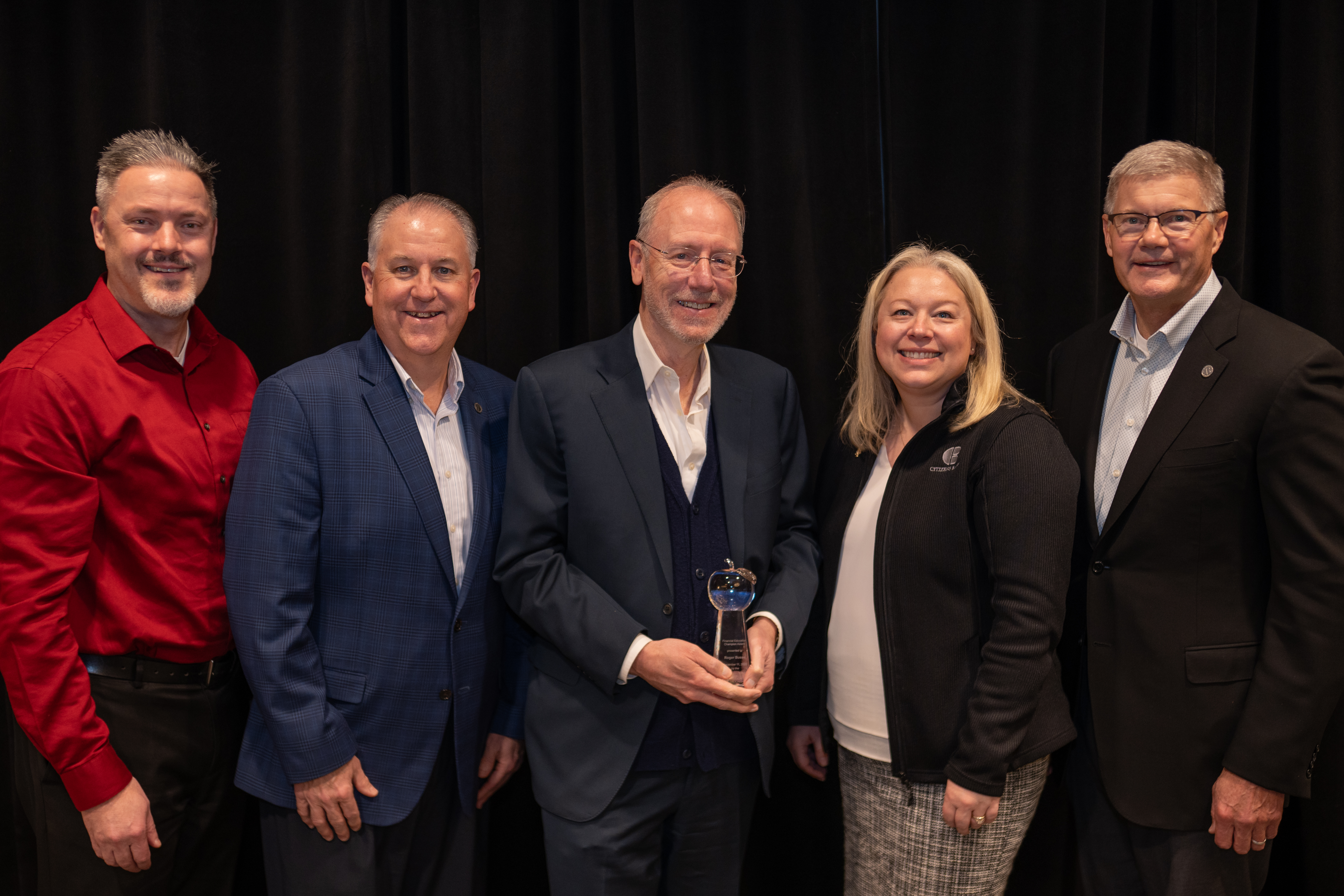 The Oregon Bankers Association (OBA) Education Foundation (“Foundation”) presented Roger Busse with the 2025 Financial Education Champion Award during a banking industry event held on Dec. 11 in Portland. Presented every other year, this award honors an individual or organization whose commitment to financial education is strengthening Oregon’s future. Busse’s impact stands out as truly exceptional.