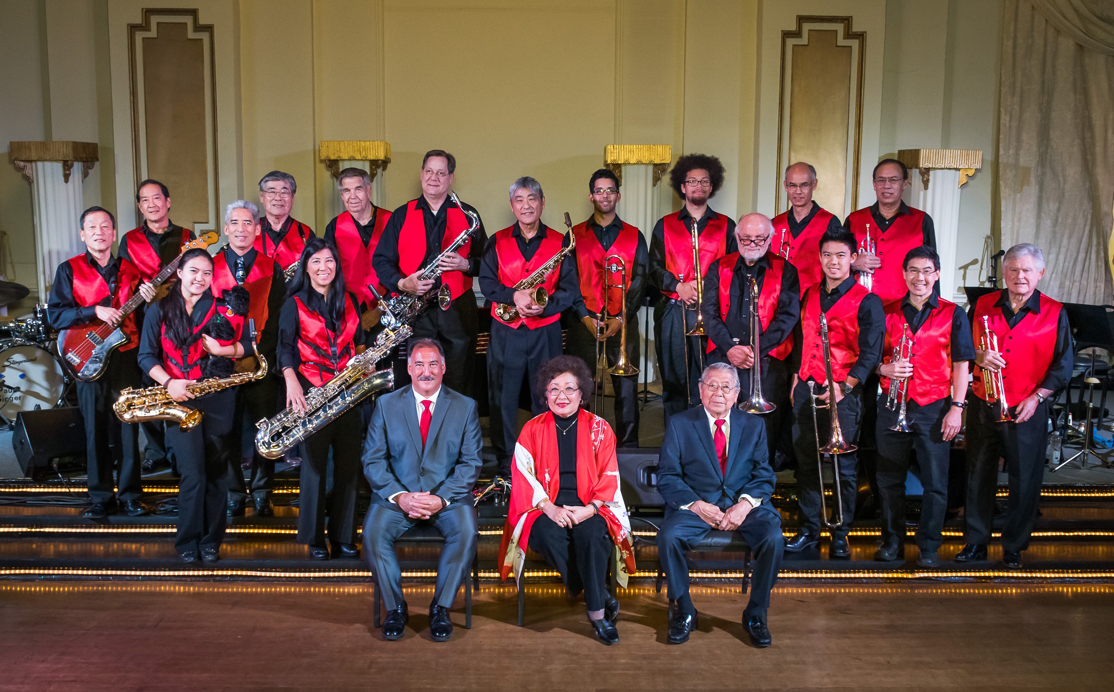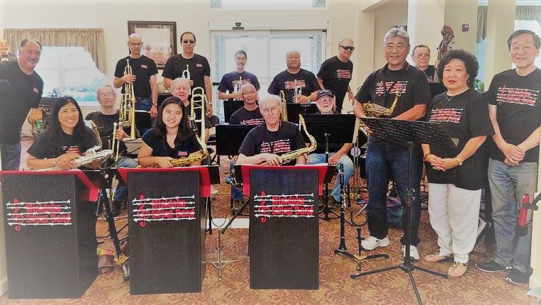 The Minidoka Swing Band was formed by the late Roberta (Robbie) Tsuboi for a 2008 pilgrimage to the Minidoka Internment Camp. The band consists of 17 musicians and two vocalists, three of whom were incarcerated during WWII. Relatives of several bandmembers were also incarcerated. The band connects audiences to the time when all internees needed something to uplift them and help them feel typically American.