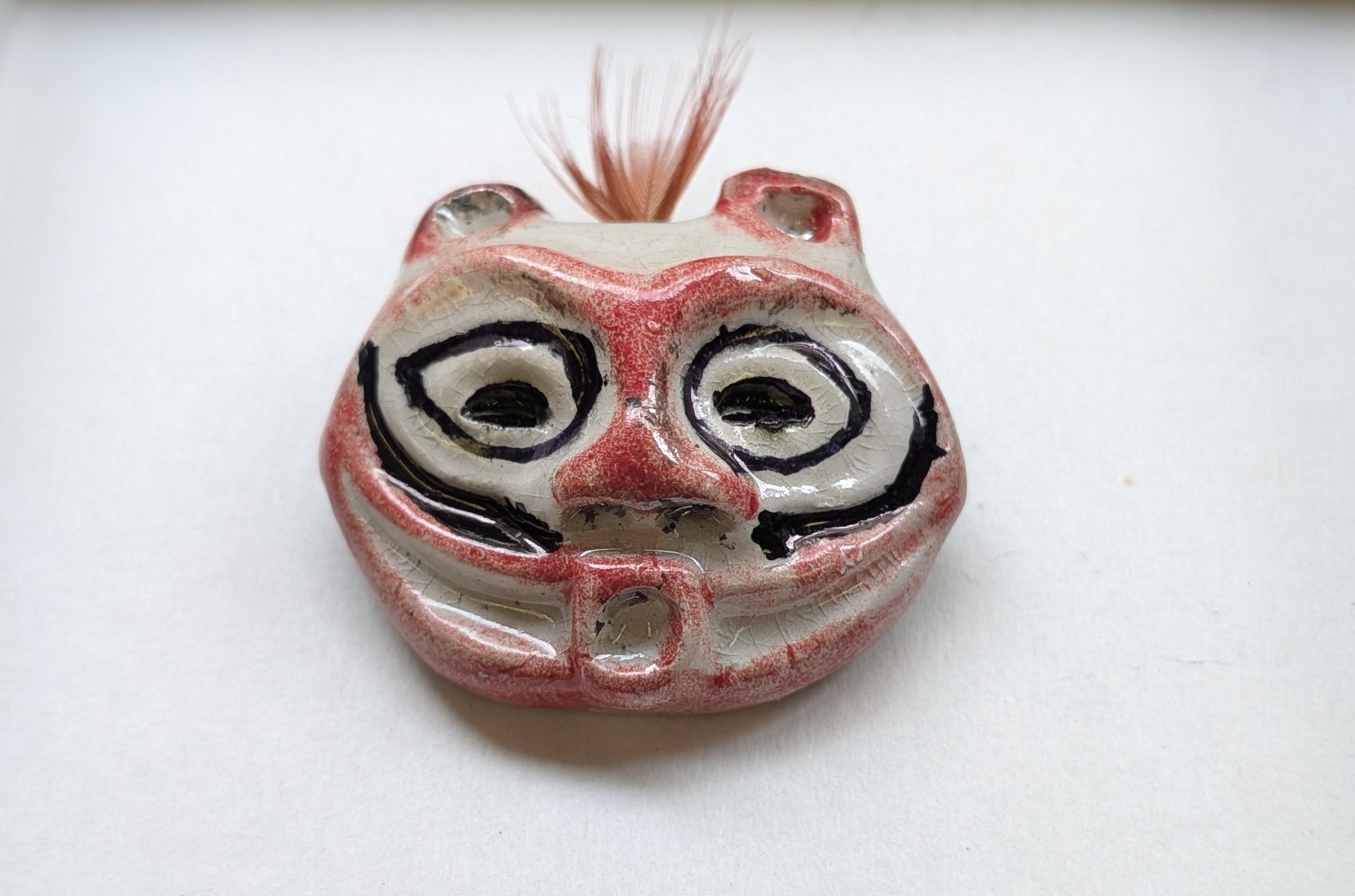 The pin that was selected is She Who Watches, Pitt’s depiction of a famous petroglyph and pictograph that is perched high on a mountain visible from her ancestral village. Under the oral traditions of tribes of the Columbia River region, She Who Watches represents Tsagaglalal, a wise and powerful chief who was transformed to stone, where she continues to keep vigil over her people and the Columbia River.