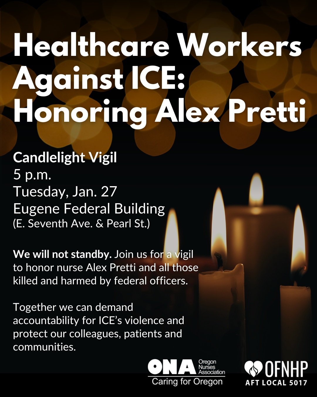 MEDIA ADVISORY: Healthcare Workers Hold Candlelight Vigil In Eugene To Honor Alex Pretti And Hold ICE Accountable (Photo) - 01/27/26