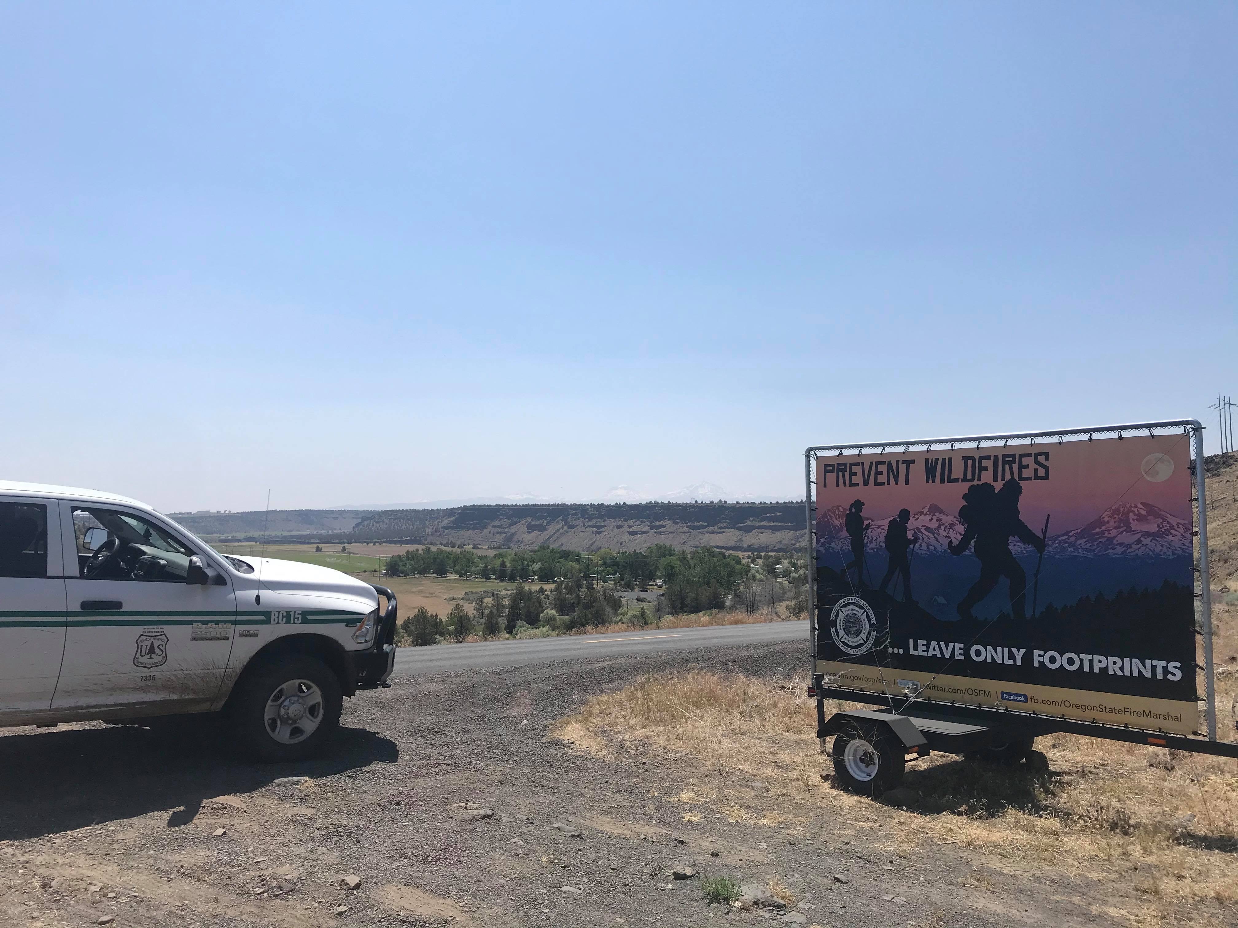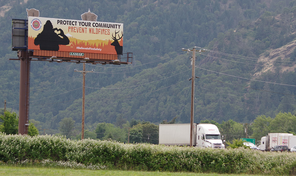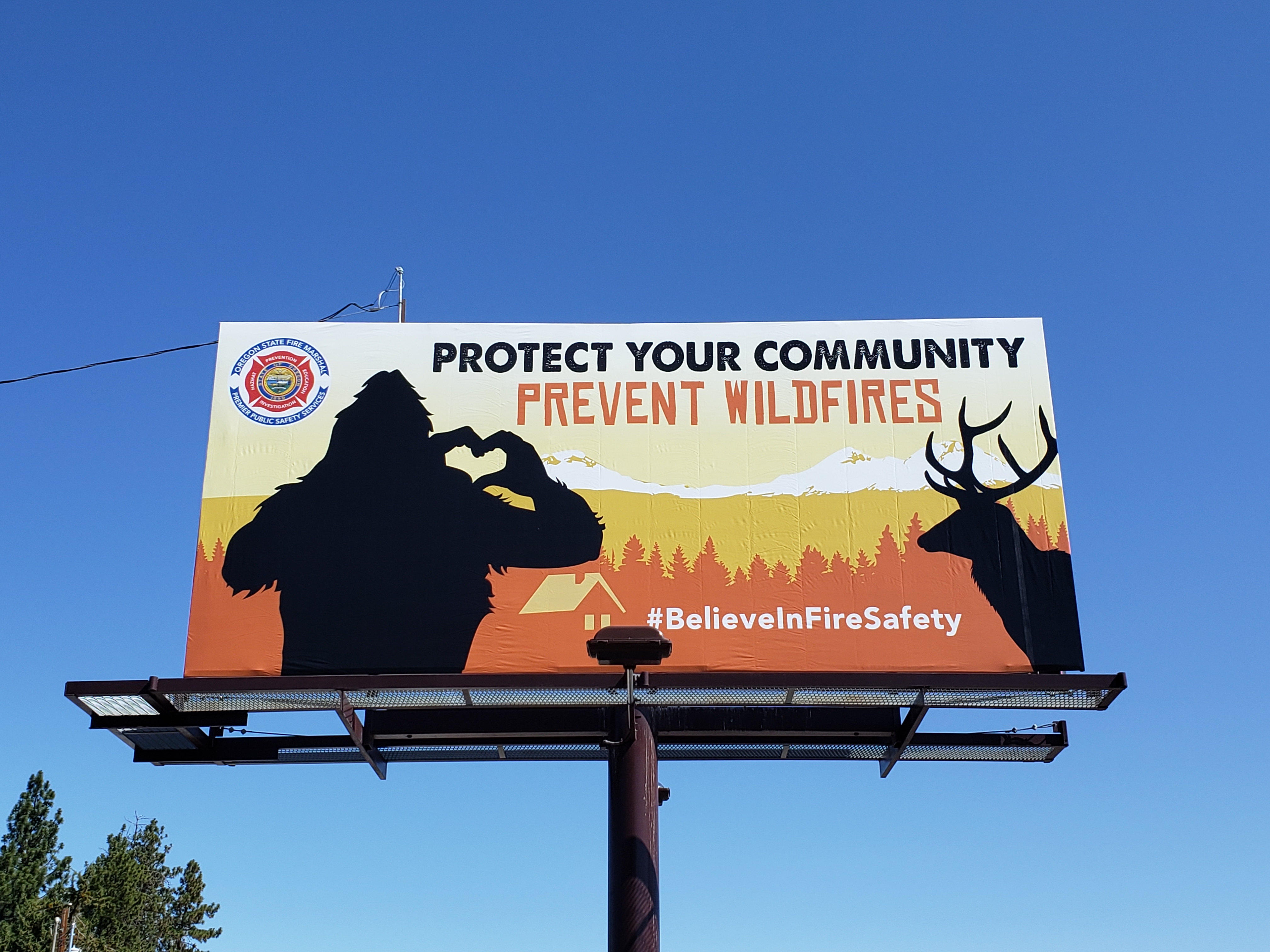 Bigfoot billboards encouraging travelers to “protect your community” and “prevent wildfires” can be seen on Interstate 5 in southern Oregon, on Interstate 84 in Portland, on State Highway 97 near Bend and State Highways 20/26 at 101, near Cairo. The sign near Cairo is now in its second year, through a partnership with the Bureau of Land Management.