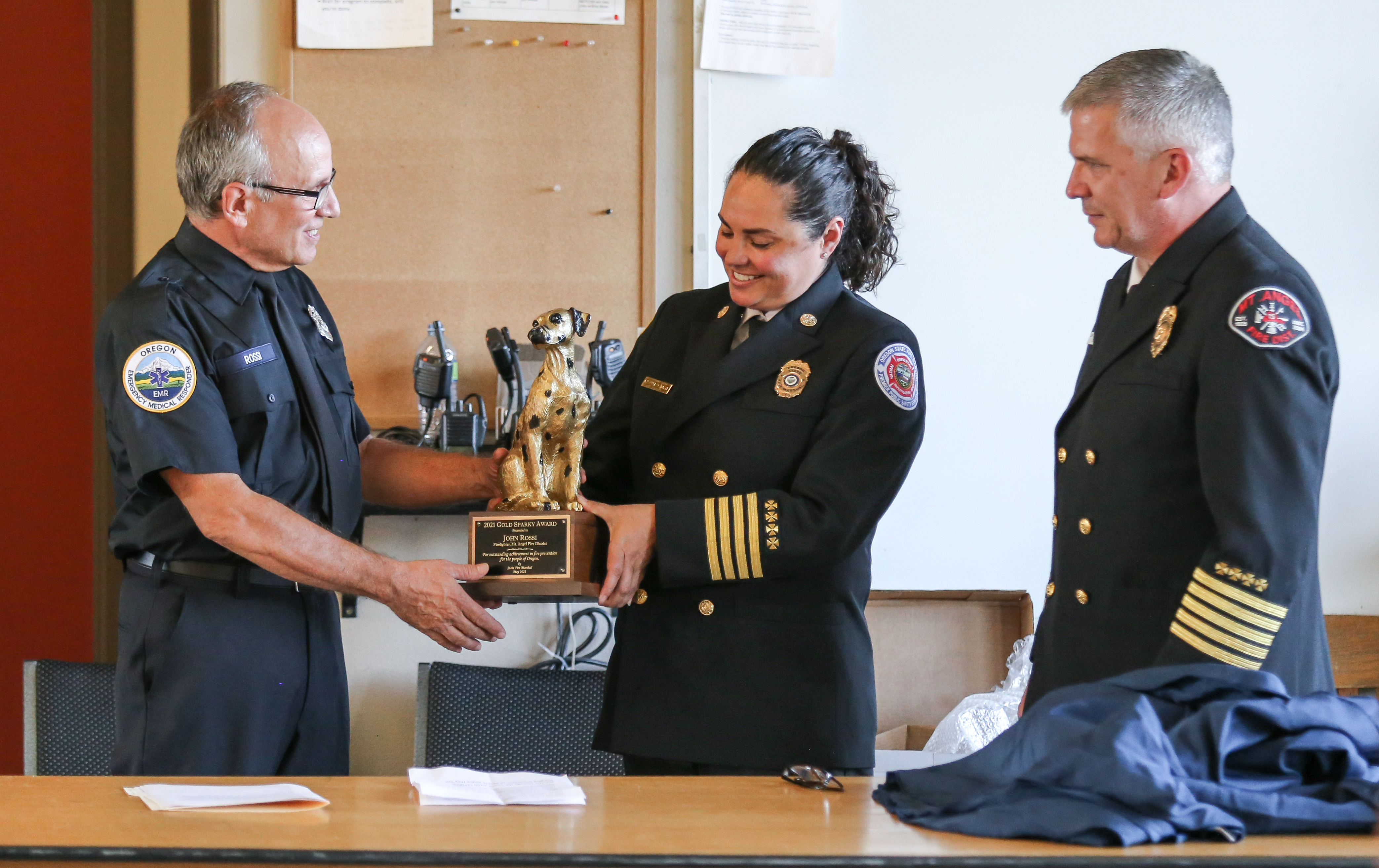 This year's Golden Sparky was awarded to Firefighter John Rossi, a Public Information Officer with Mt. Angel Fire. Rossi's public information and education work has elevated the community and the region's fire prevention and preparedness efforts.