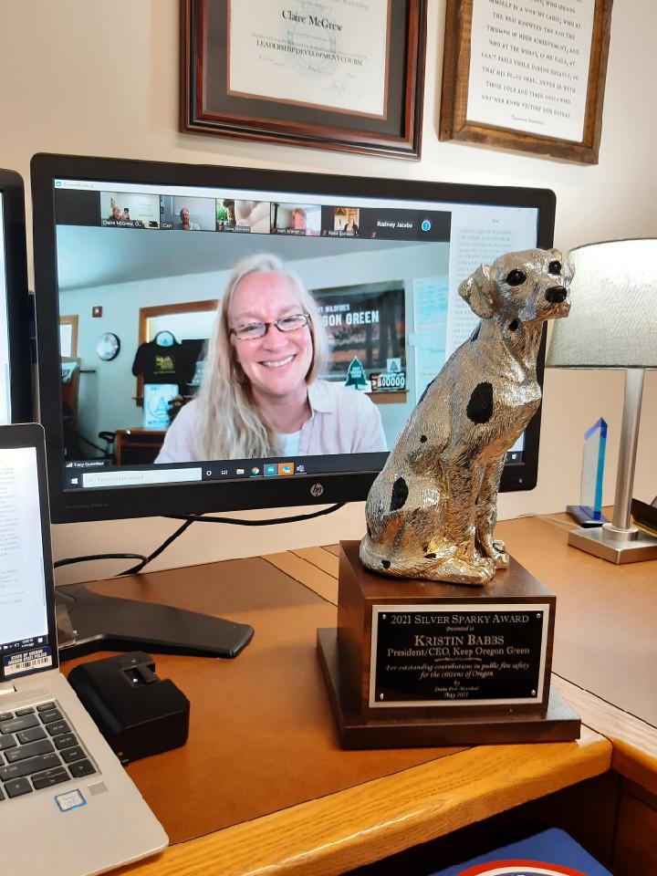 This year, Kris Babbs, the president of Keep Oregon Green, was awarded the Silver Sparky. Keep Oregon Green is a non-profit that focuses on fire prevention across the state of Oregon. Babbs puts in countless hours and possesses a remarkable dedication to prevent fires across the state. In addition, Babbs leadership has elevated relationships among state and federal agencies. Her projects have brought OSFM and the fire service into the conversation and leveraged our programs and footprint in Oregon to further prevention and life safety.