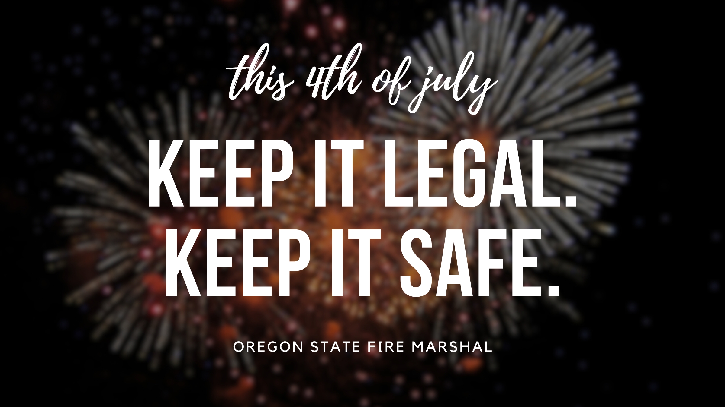 “We ask Oregonians to be responsible if they plan to use fireworks as part of their celebrations,” OSFM Assistant Chief Deputy Mark Johnston said. “Every year, we see fires and injuries because of improper use of fireworks or illegal fireworks. Our message is simple: keep it legal and keep it safe.”