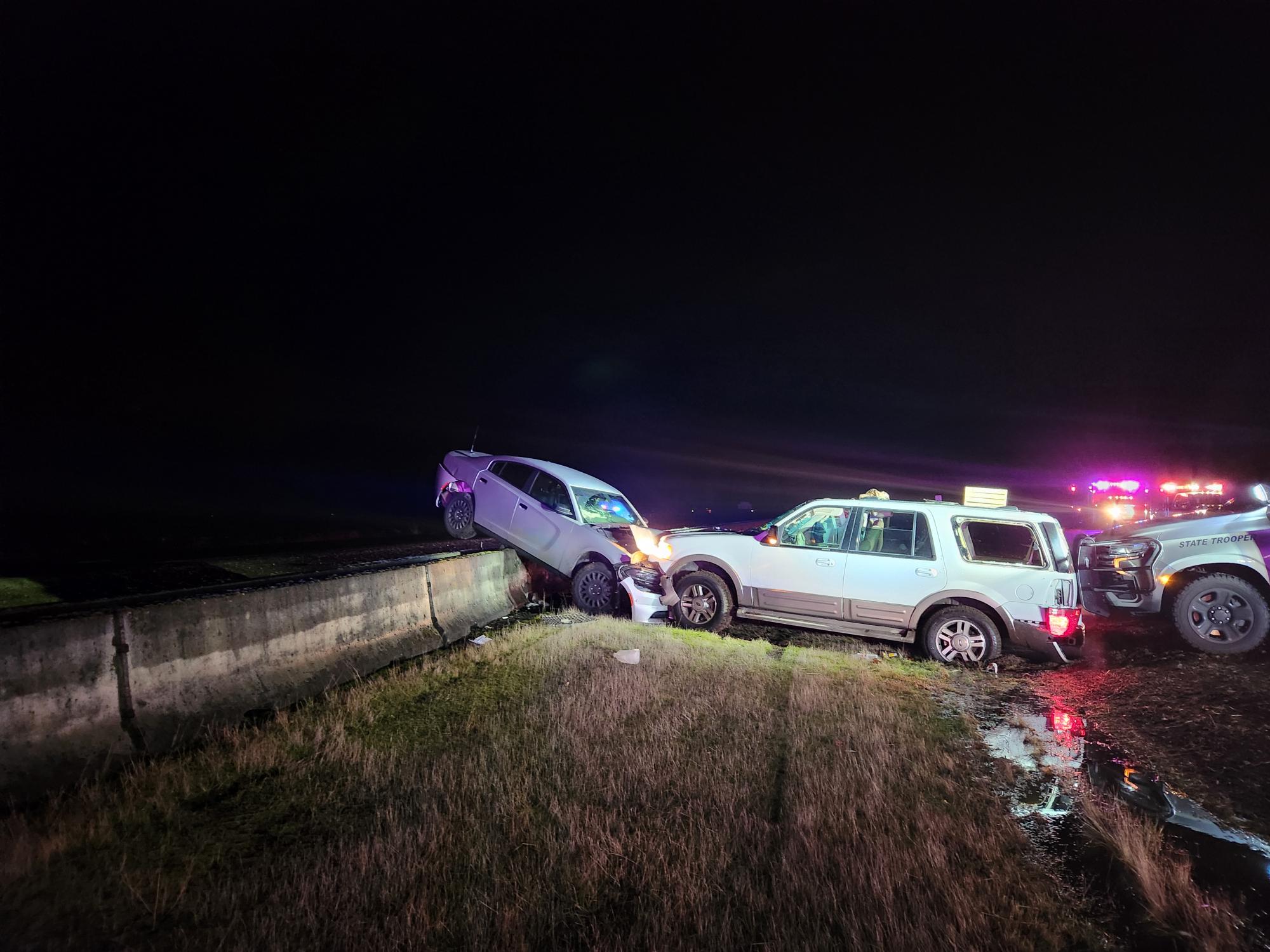 On November 30, 2022, at approximately 10:20 P.M., Oregon State Police Troopers were in a short pursuit of an SUV that was driving recklessly on Interstate 5 southbound at milepost 253 around Jefferson, Oregon. The SUV made an erratic U-turn and began to travel northbound in the southbound lane before intentionally ramming an OSP Patrol car.