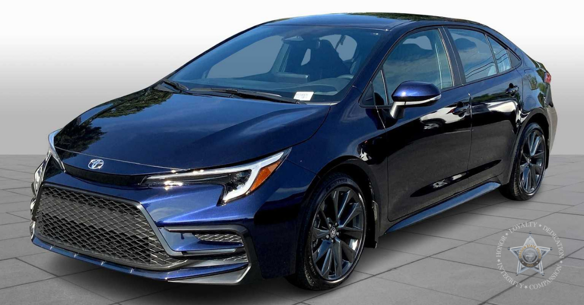The suspect vehicle fled the scene and was reportedly driving at a high rate of speed prior to the crash. Broken vehicle parts at the scene indicate the vehicle is likely a dark blue 2023–2025 Toyota Corolla SE with damage to the driver’s side bumper and side wheel well.