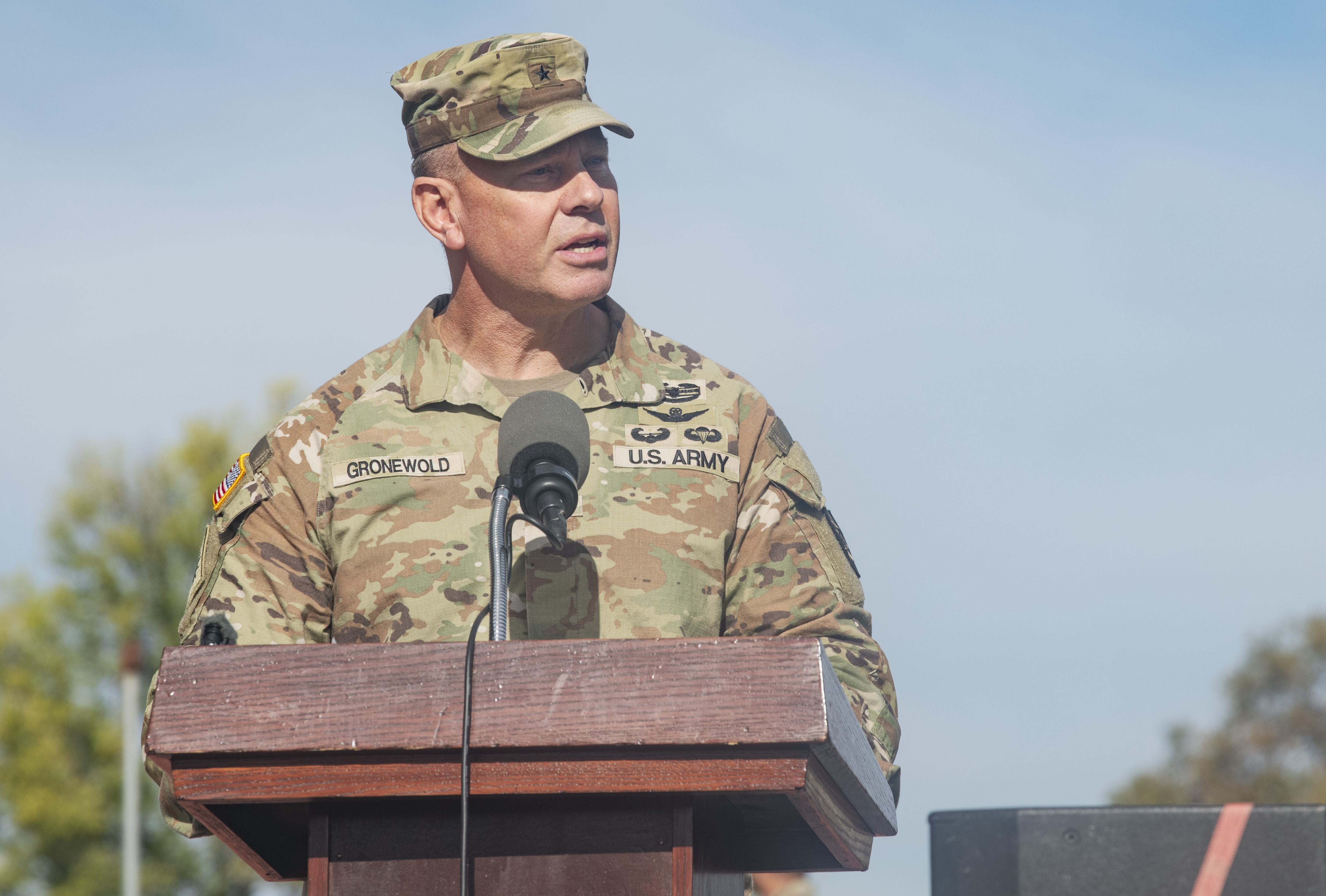 241020-Z-CH590-1046 and 241020-Z-CH590-1170: Brig. Gen. Alan R. Gronewold, Adjutant General, Oregon, delivers formal remarks to the Soldiers, family members and others in attendance as the presiding officer for the 1st Battalion, 186th Infantry Regiment during their formal mobilization ceremony held on the campus of Southern Oregon University, in Ashland, Oregon on October 20, 2024. The 1-168th Infantry Regiment is scheduled to deploy to the Sinai Peninsula of Egypt. The unit’s primary mission will be to supervise the implementation of the security provisions of the Egyptian-Israeli Treaty of Peace and employ best efforts to prevent violation of any of its terms. (National Guard photo by John Hughel, Oregon Military Department Public Affairs)