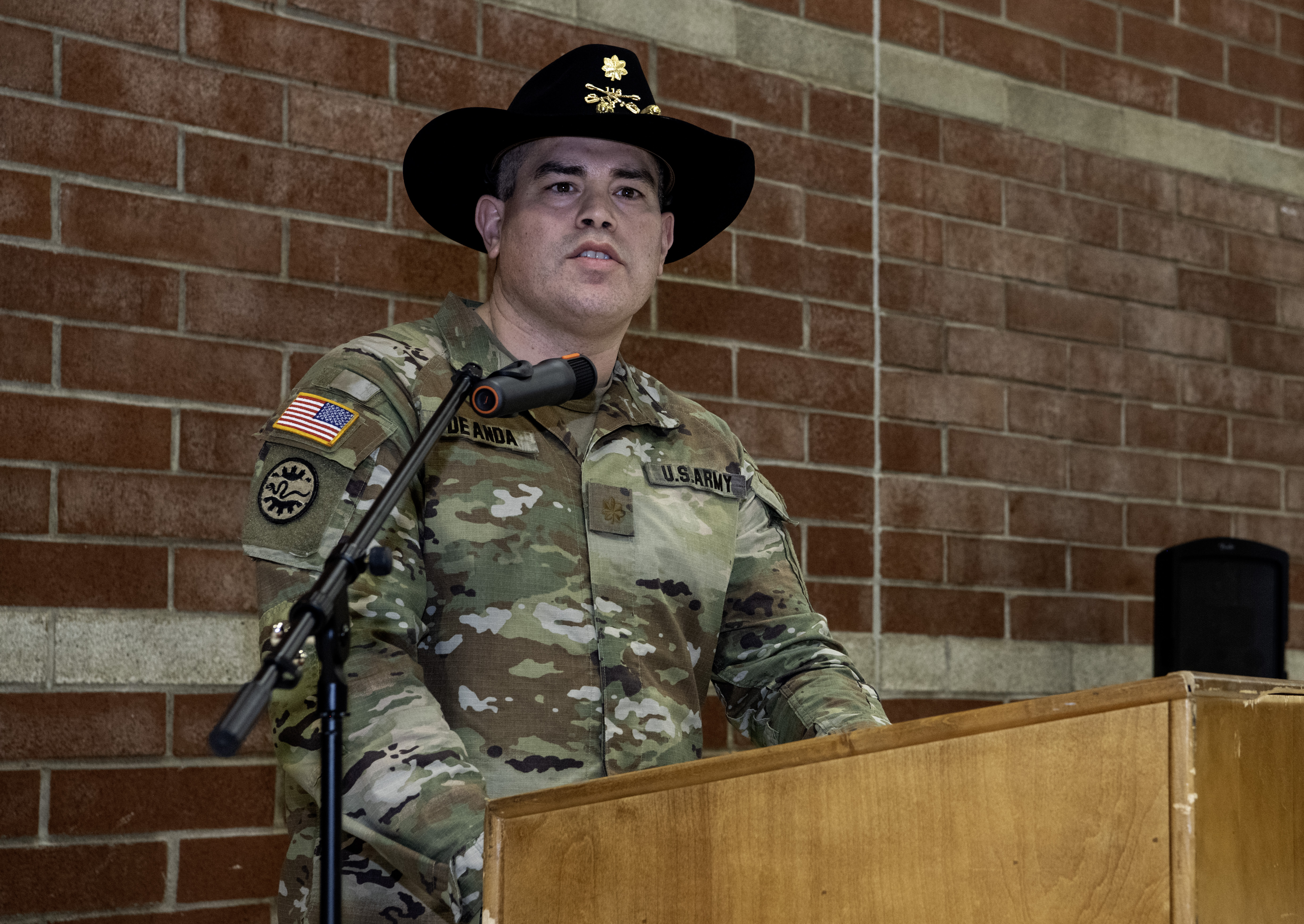 260110-Z-CH590-1125: Oregon Army National Guard Maj. Jorge L. De Anda delivers his remarks as the incoming commander to those in attendance at the 3rd Battalion, 116th Cavalry Regiment, held at the Hermiston Army National Guard Armory in Hermiston, Oregon, on Jan. 10, 2026. Lt. Col. Christopher Miller relinquished command to Maj. De Anda as the unit transitions from armor to infantry as part of the Army’s Transformation in Contact initiative. (Oregon National Guard photo by John Hughel)