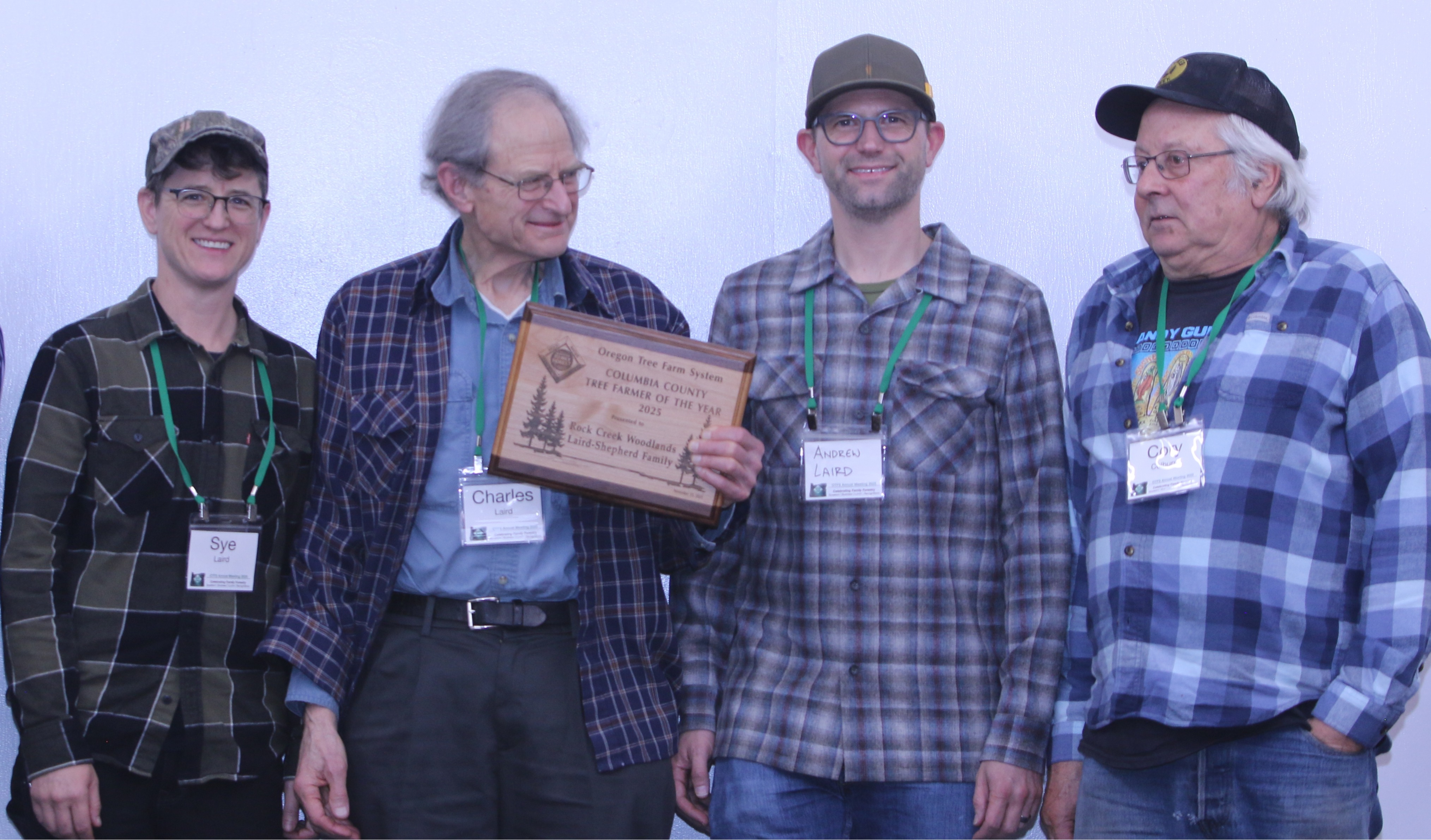 RICKREALL, Ore. - The Oregon Tree Farm System (OTFS) recently honored the Laird-Shepherd Family as Columbia County’s Outstanding Tree Farmer of the Year. The family owns and manages 115 acres of forestland near Vernonia in Columbia County. The honor was bestowed at the organization’s annual meeting held Nov. 15th at the Polk County Fair Grounds in Rickreall.