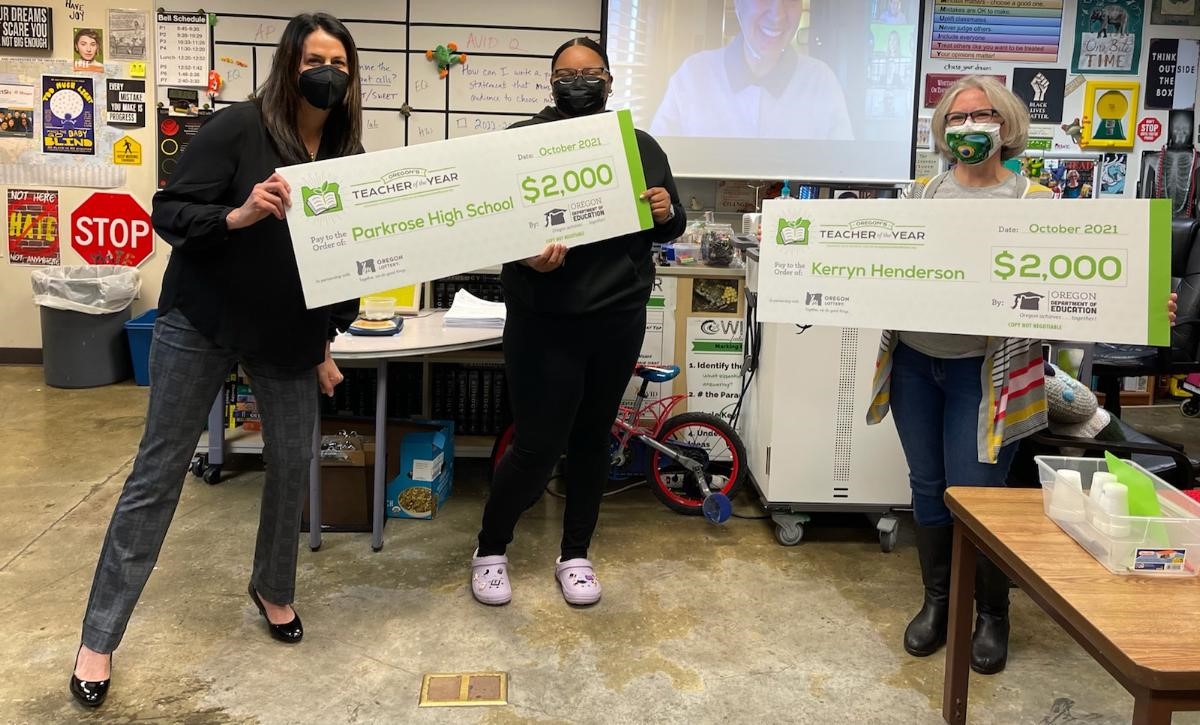 (Portland, OR) - The Oregon Department of Education, in partnership with the Oregon Lottery, is pleased to celebrate Parkrose High School teacher Kerryn Henderson as a 2022 Teacher of the Year Finalist, and award both Kerryn and her school with a $2,000 cash prize!