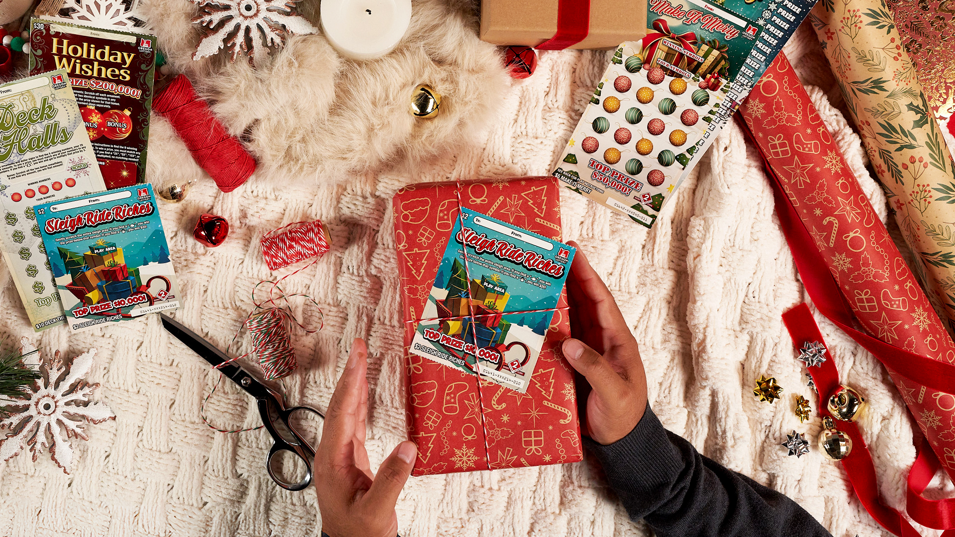 This year, Oregon Lottery’s holiday Scratch-it tickets are available in five festive designs, ranging from “Make It Merry” to “Sleigh Ride Riches.” The tickets, priced from $2 to $30, make popular stocking stuffers and can be found at Oregon Lottery retailers across the state.
